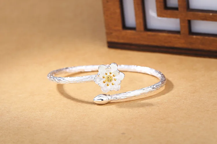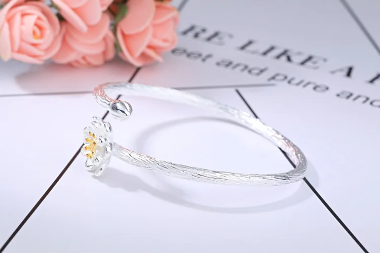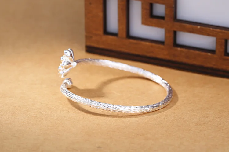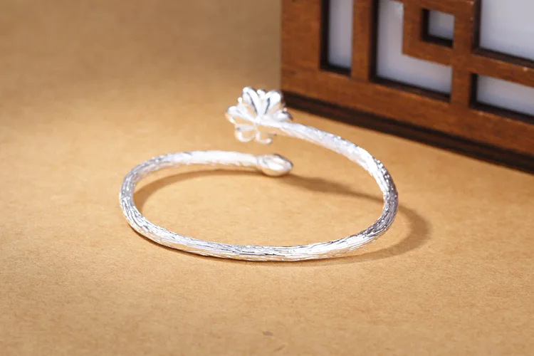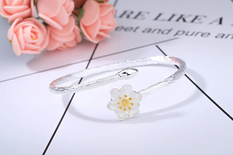 Victoria’s Vogue New Fashion Exquisite Creative 925 Sterling Silver Jewelry Bracelets Edition Featured Lotus Flower Bangles