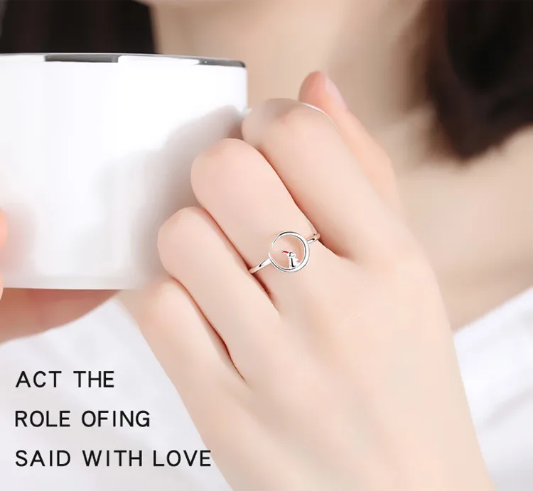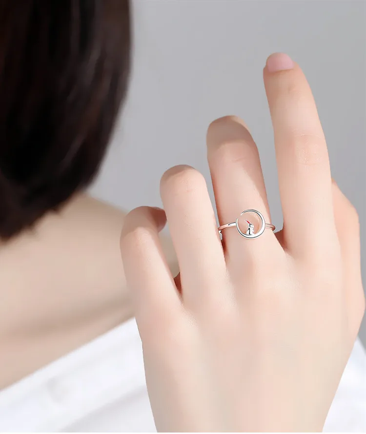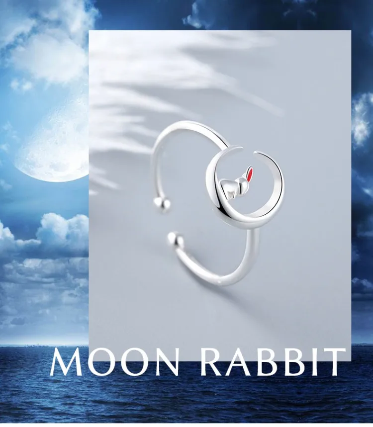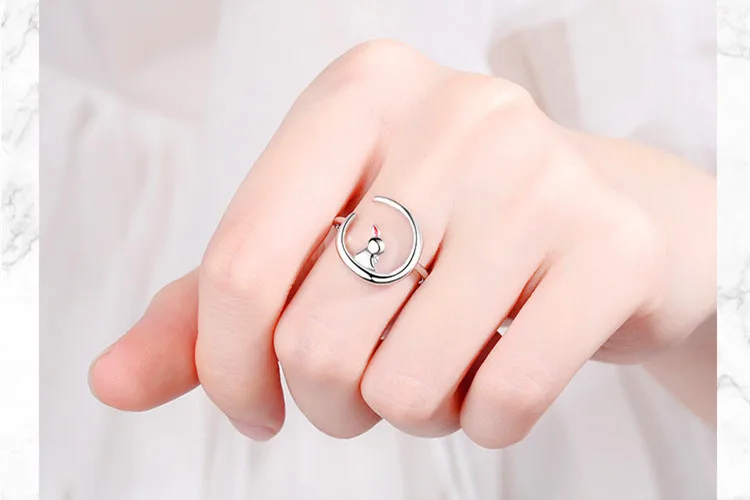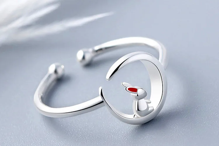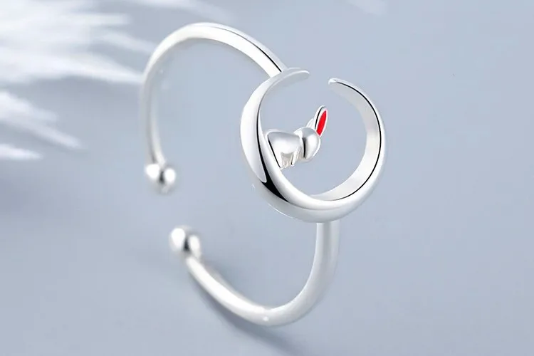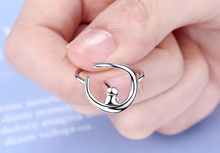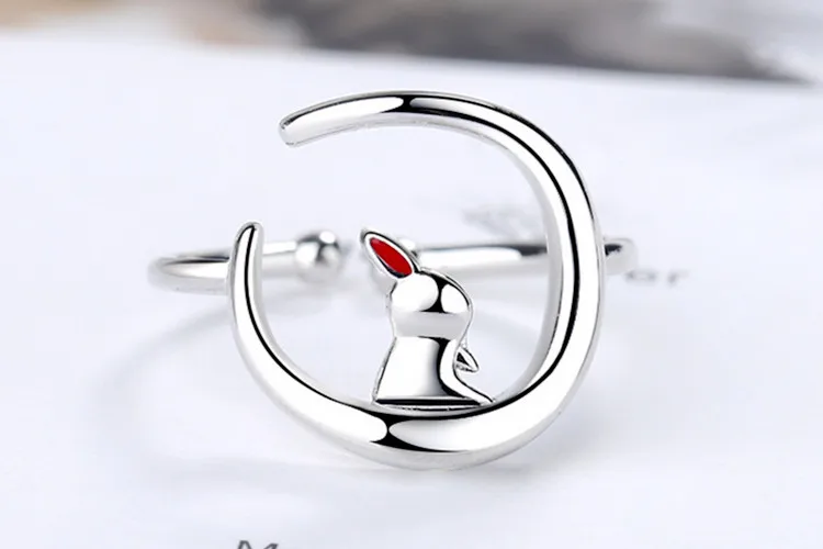 Victoria’s Vogue New Fashion Exquisite Crooked Moon Rabbit 925 Sterling Silver Jewelry Cute Jade Rabbit Sweet Animal Opening Rings
