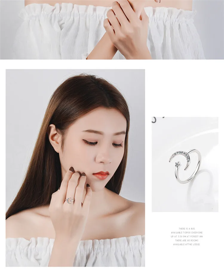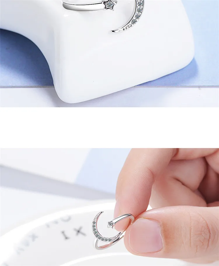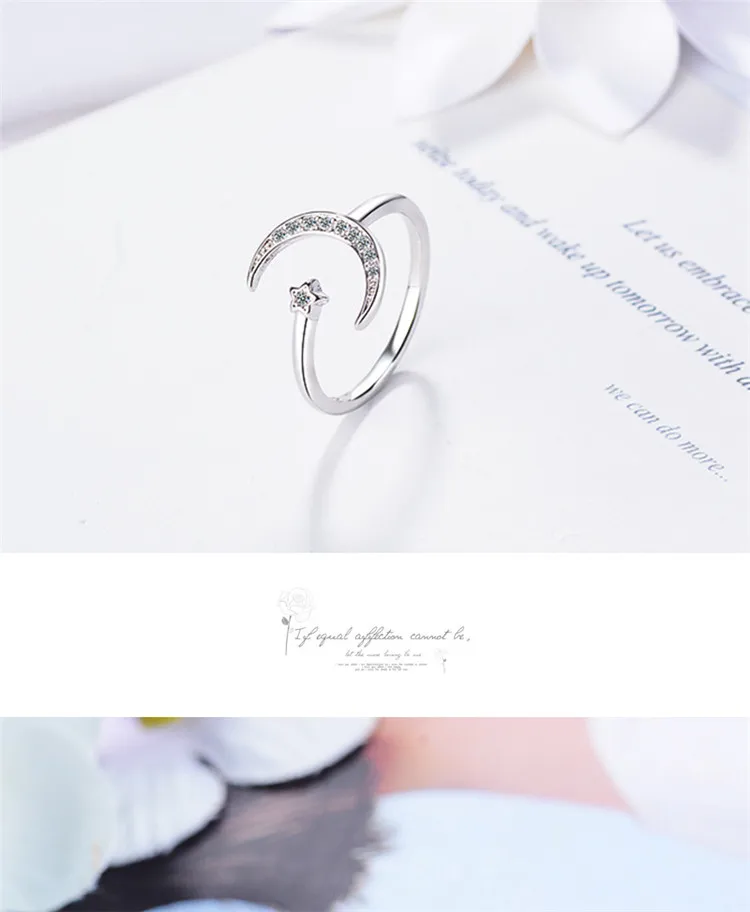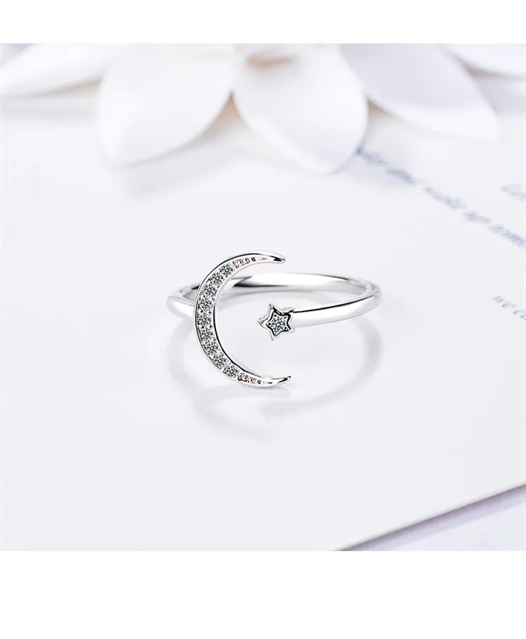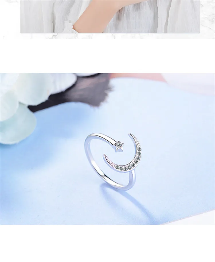 Victoria’s Vogue New Fashion Exquisite Temperament 925 Sterling Silver Jewelry Not Allergic Moon And Star Crystal Opening Rings