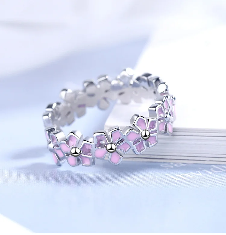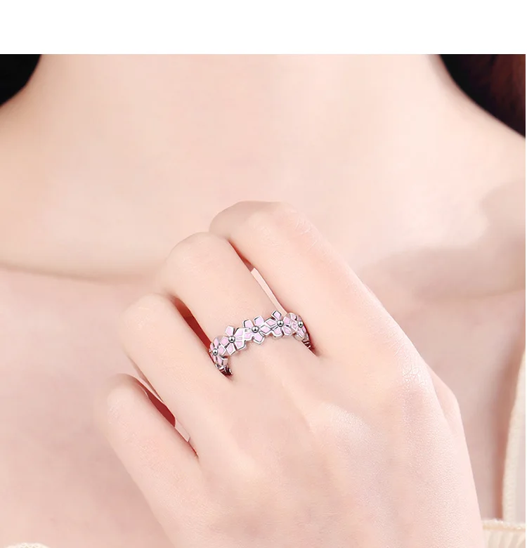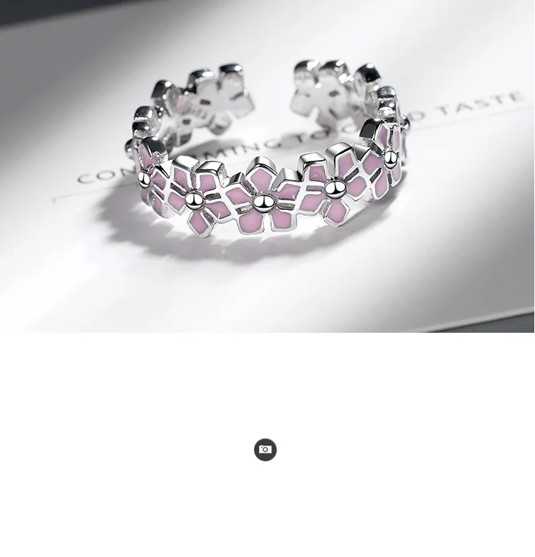 Victoria’s Vogue New Fashion Fresh Flowers And Leaves Pink Epoxy 925 Sterling Silver Jewelry Sweet Personality Opening Rings XZR087