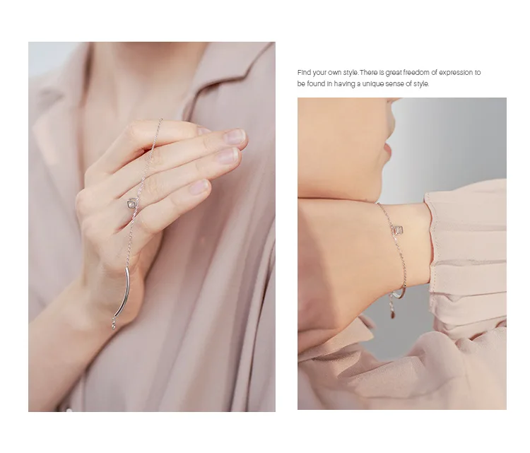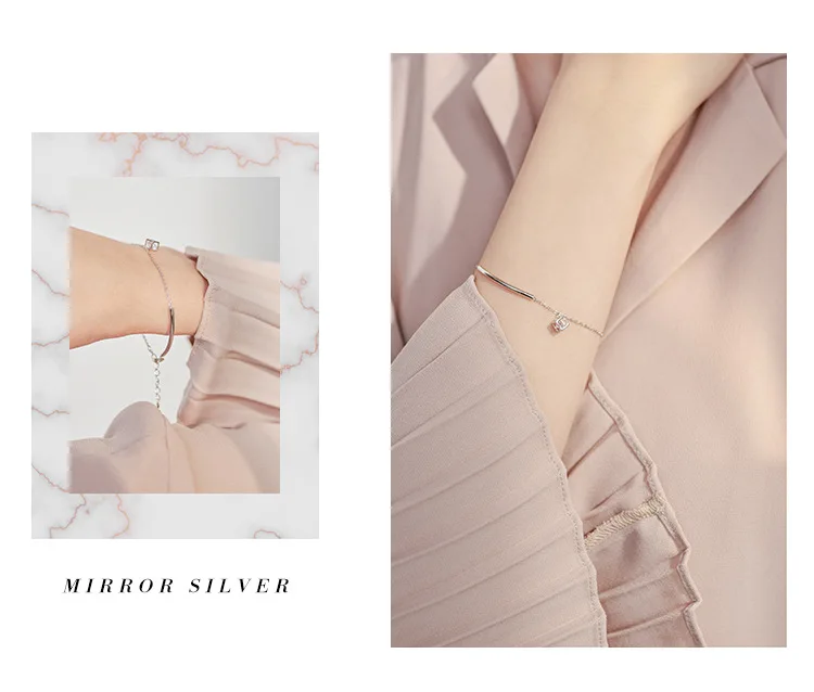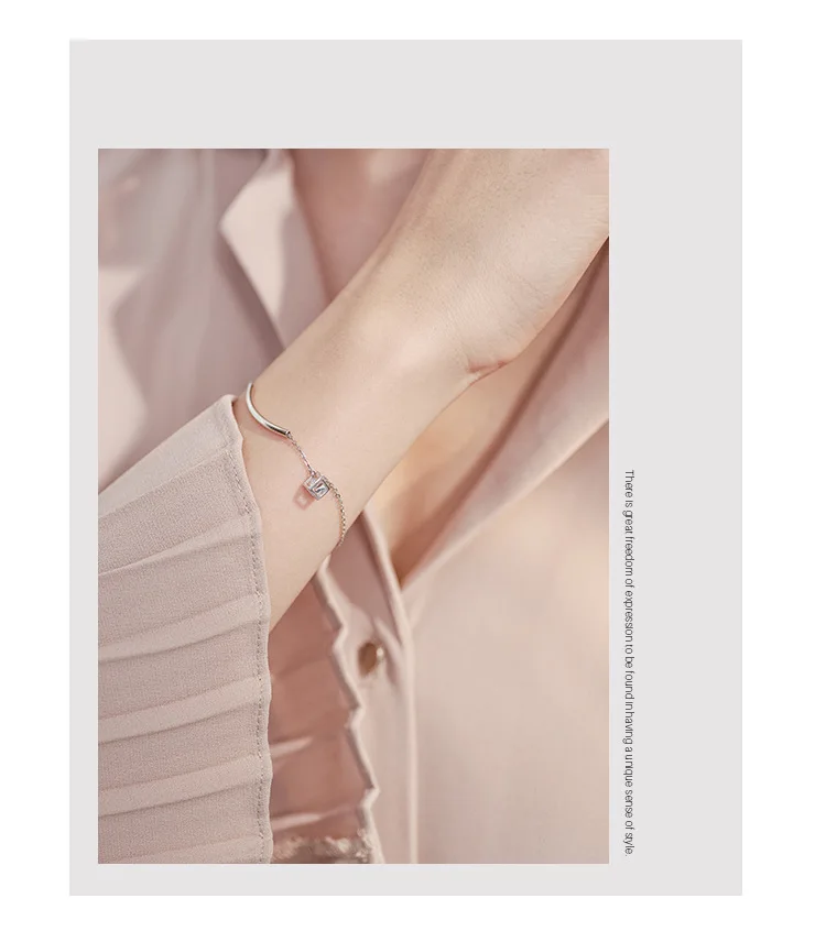 Victoria’s Vogue New Fashion Half Moon Elbow Three-dimensional Geometric Cube 925 Sterling Silver Jewelry Temperament Women Bracelets