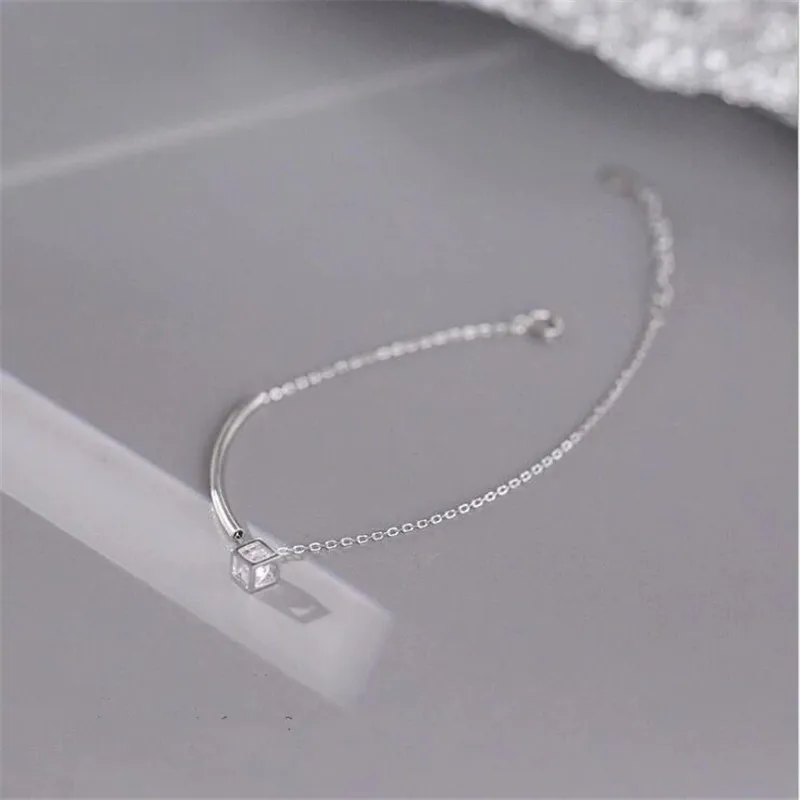 Victoria’s Vogue New Fashion Half Moon Elbow Three-dimensional Geometric Cube 925 Sterling Silver Jewelry Temperament Women Bracelets