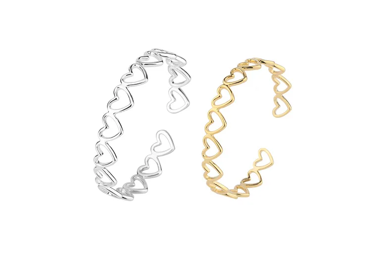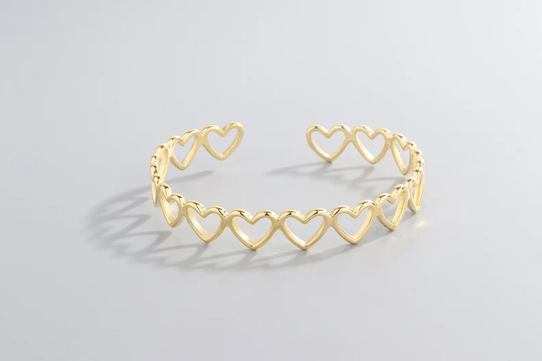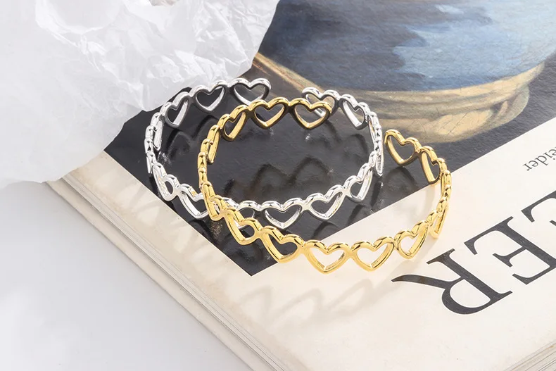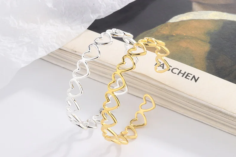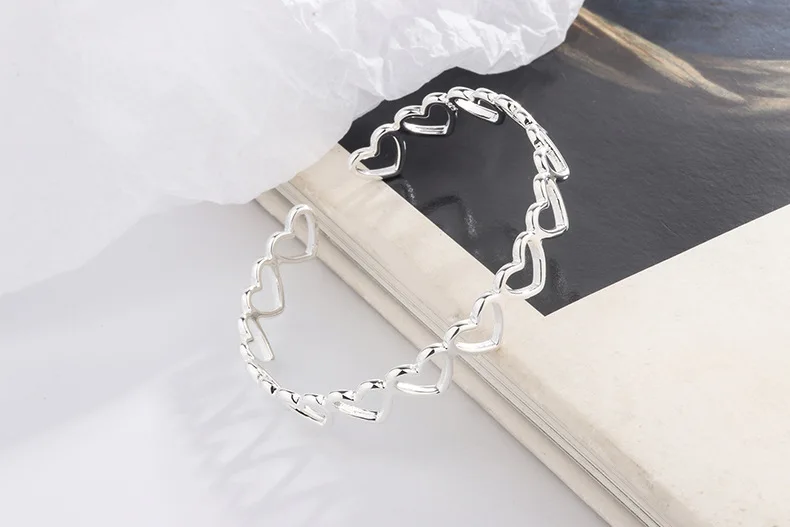 victoria’s vogue New Fashion Heart-to-Heart Bracelets 925 Sterling Silver Jewelry Hollow Love Simple Personality Heart Opening Bangles