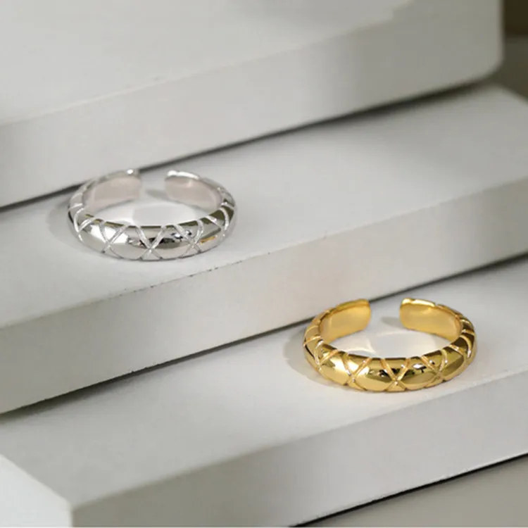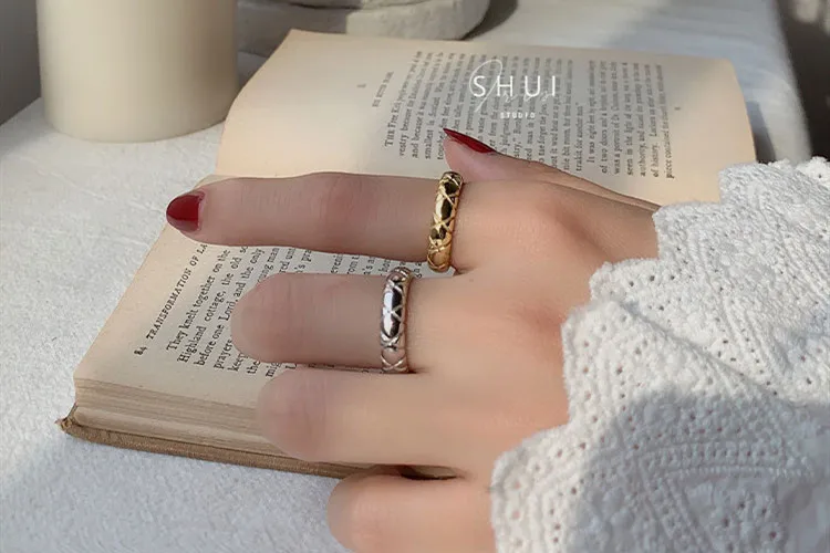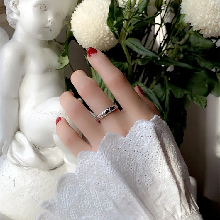 Victoria’s Vogue New Fashion Ins Minimalist Scenery Face Diamond Geometric 925 Sterling Silver Jewelry Personality Female Opening Rings