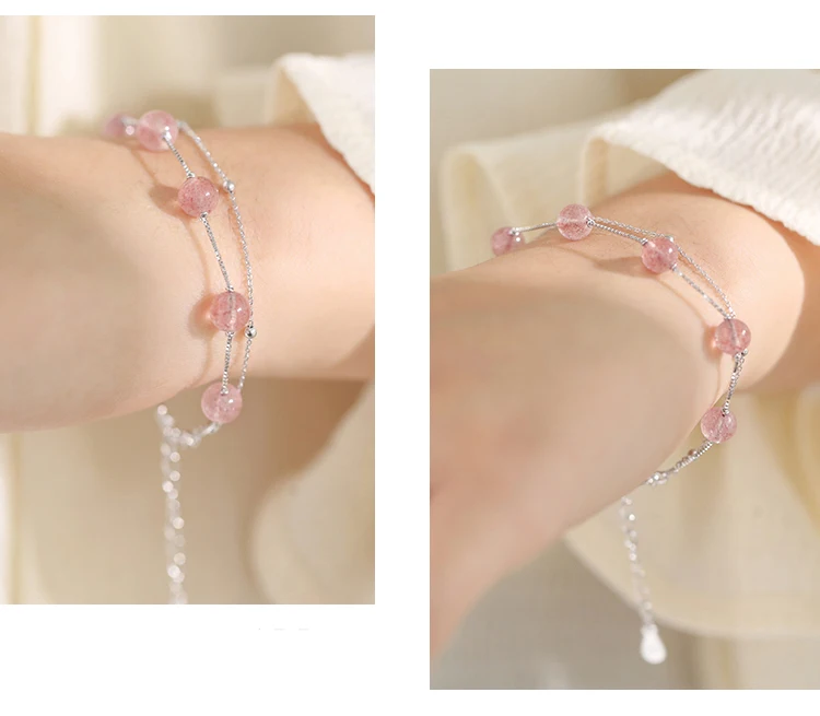 Victoria’s Vogue New Fashion Jewelry Beautiful 925 Sterling Silver Bracelets Strawberry Crystal Simple Personality Sweet Bracelets