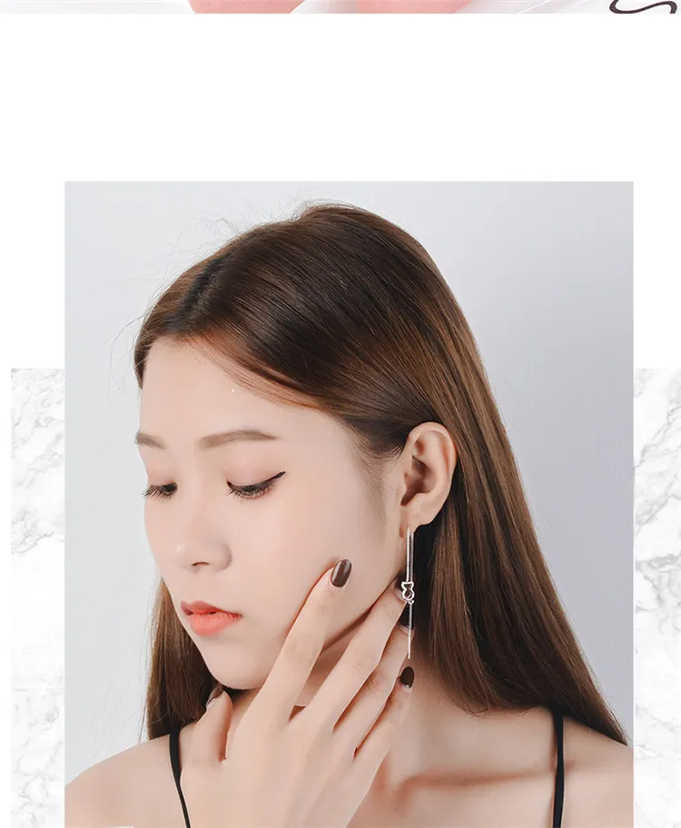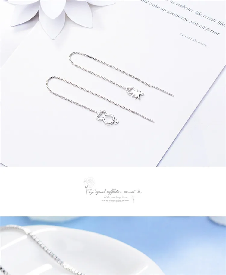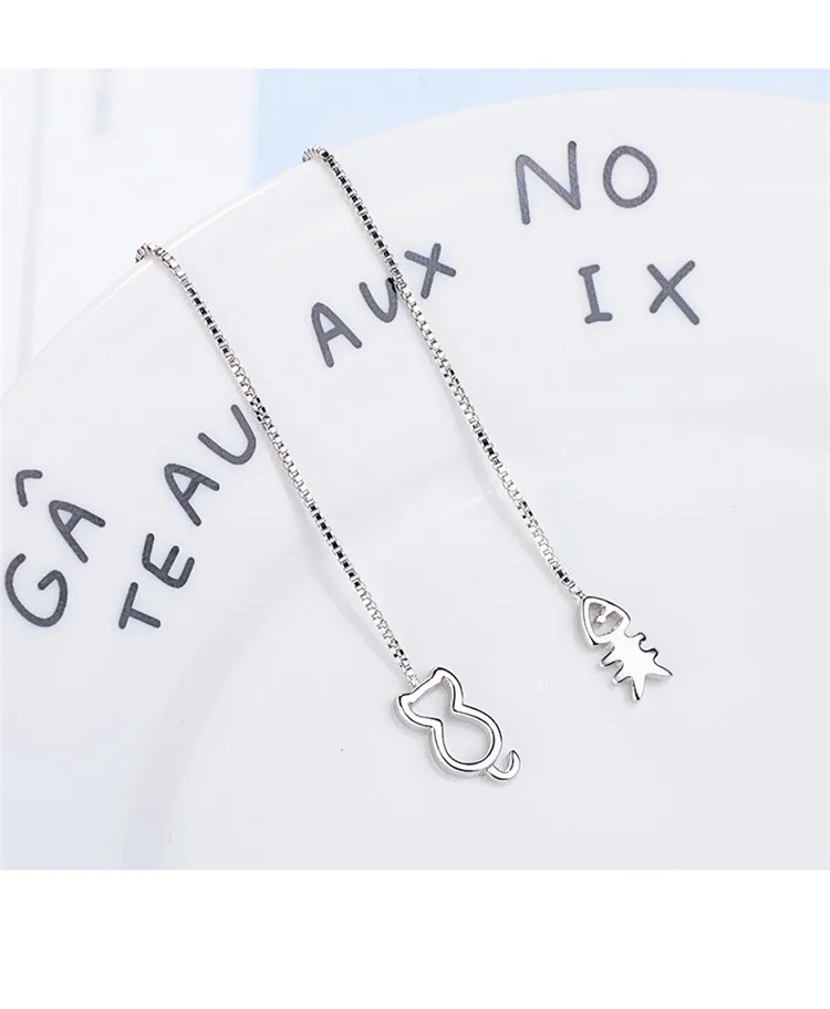 Victoria’s Vogue New Fashion Lovely Fresh Ear Line 925 Sterling Silver Jewelry Hollow Asymmetric Creative Cat And Fish Dangle Earrings
