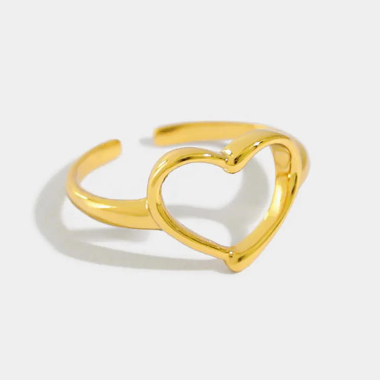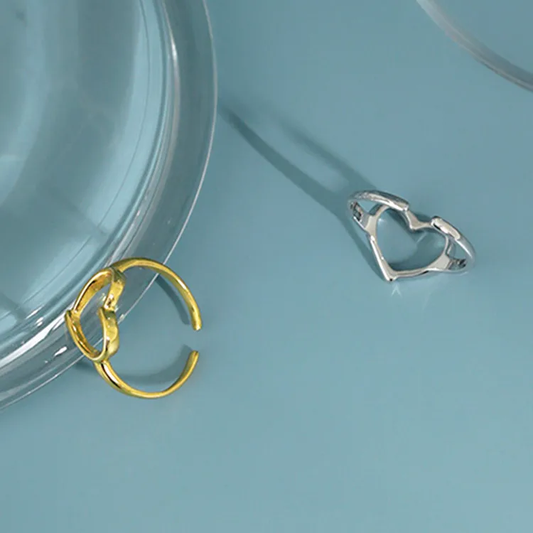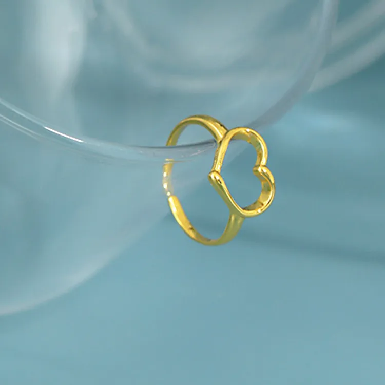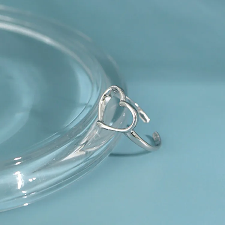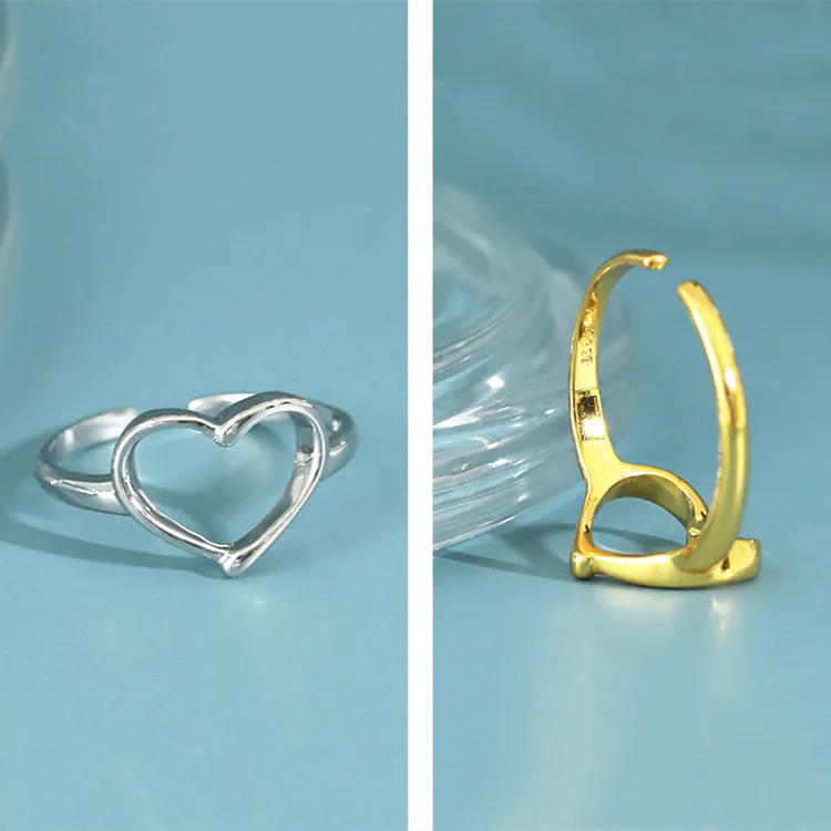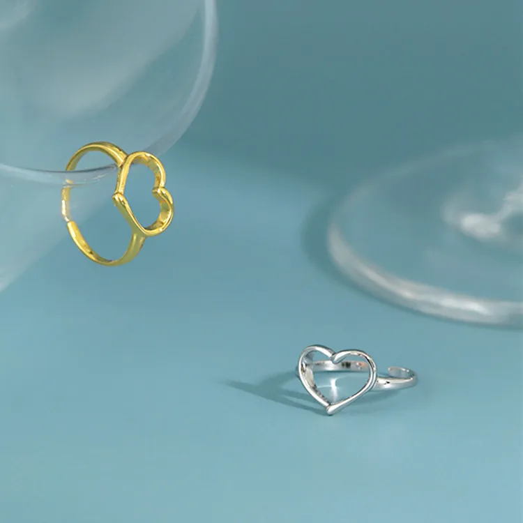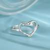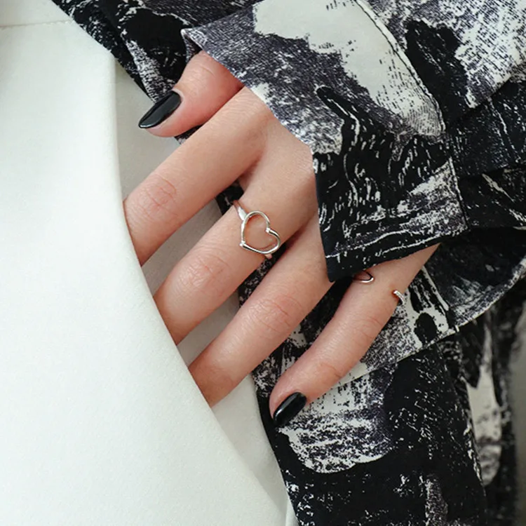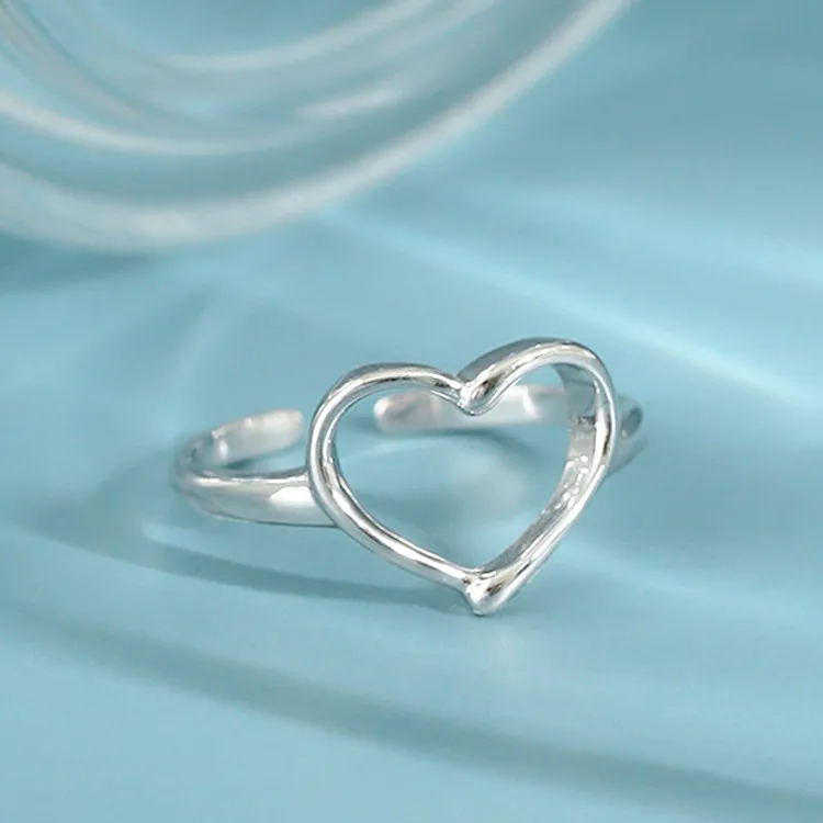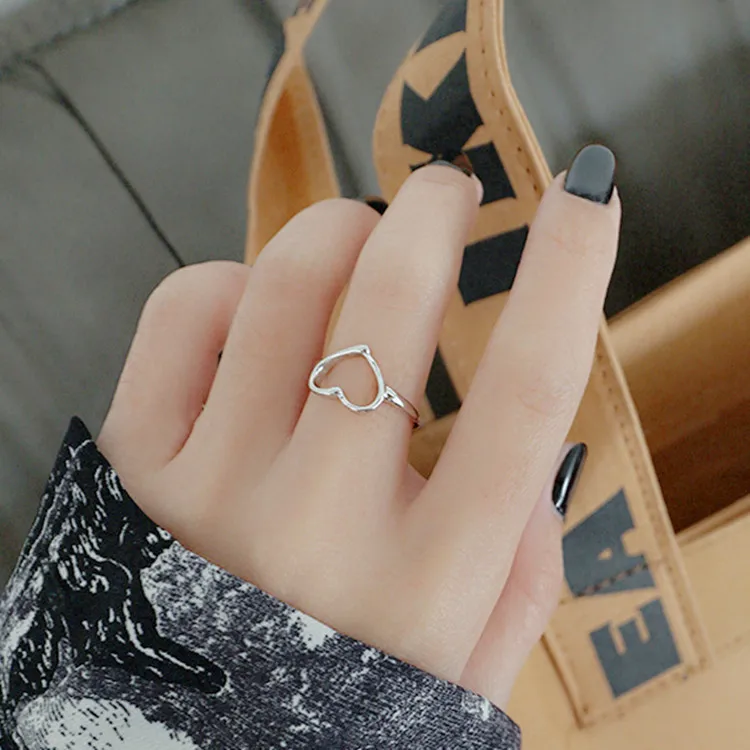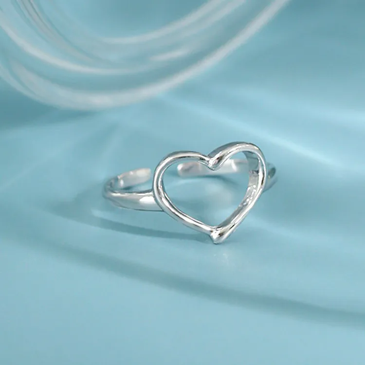 Victoria’s Vogue New Fashion Minimalist Personality Heart 925 Sterling Silver Jewelry Smooth Hollow Heart-Shaped Popular Opening Rings