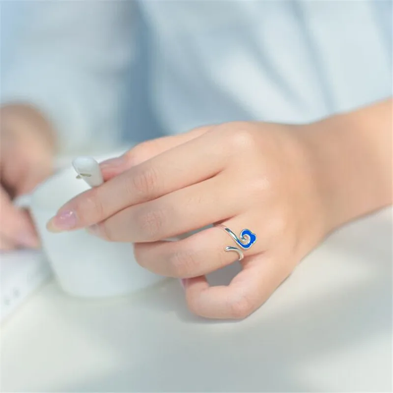 victoria’s vogue New Fashion Nostalgic Auspicipis Clouds Silver Plated Jewelry Personality Burning Blue Temperament Opening Rings