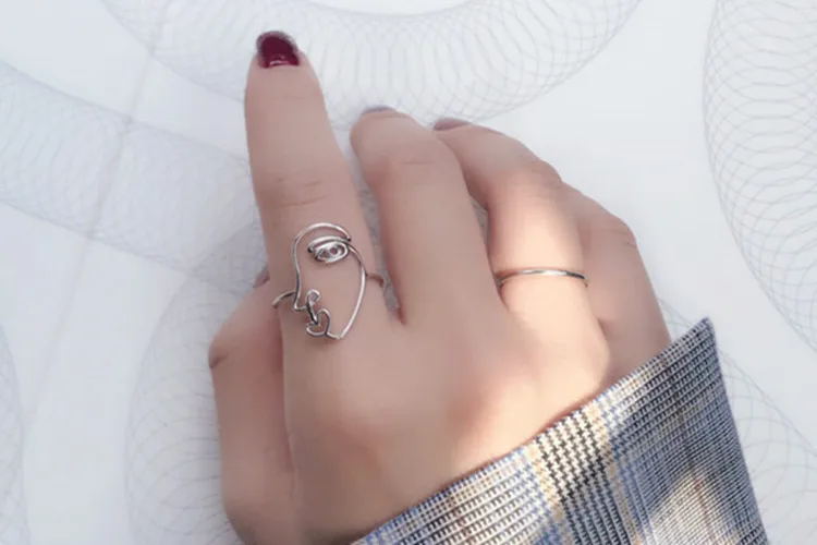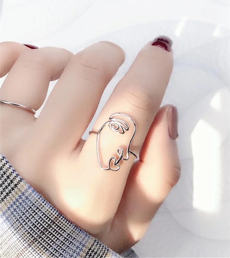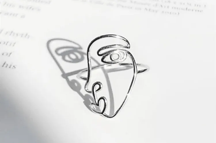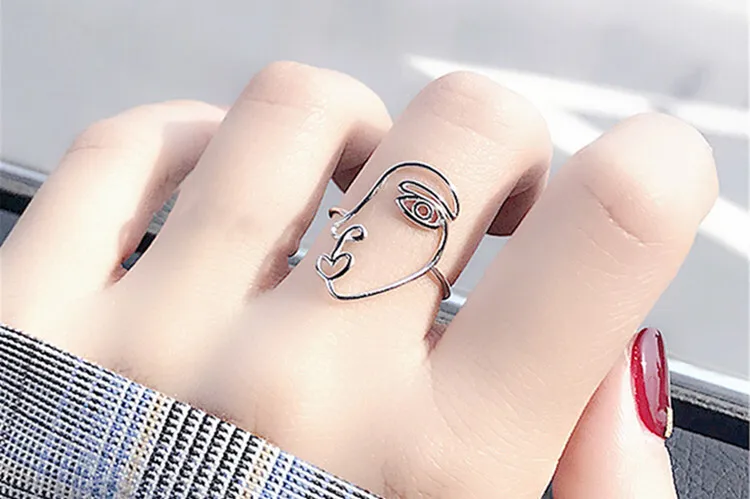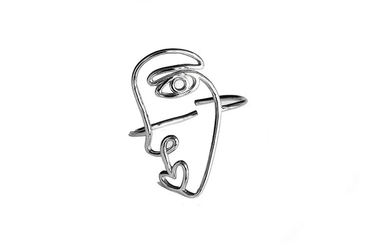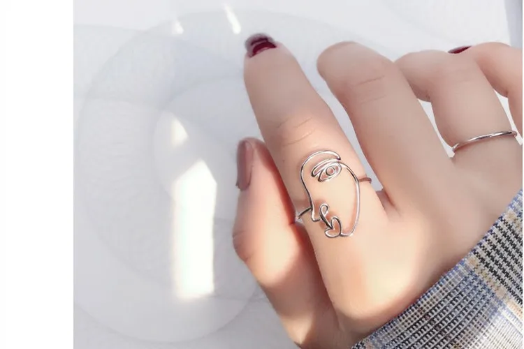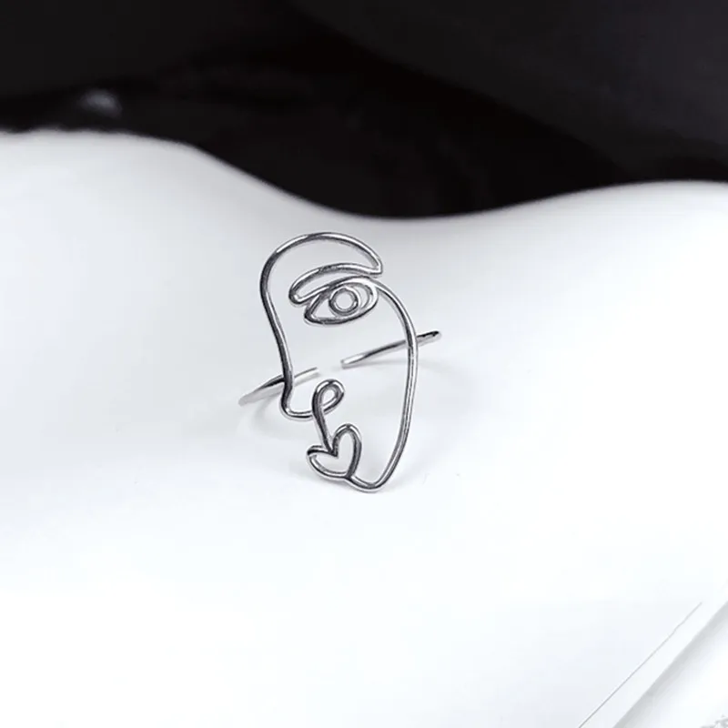 Victoria’s Vogue New Fashion Personality Line Irregular Hollow Face 925 Sterling Silver Jewelry Simple Temperament Exquisite Opening Rings