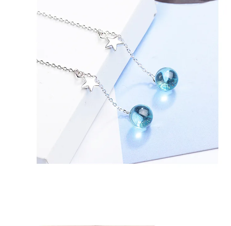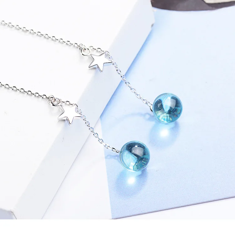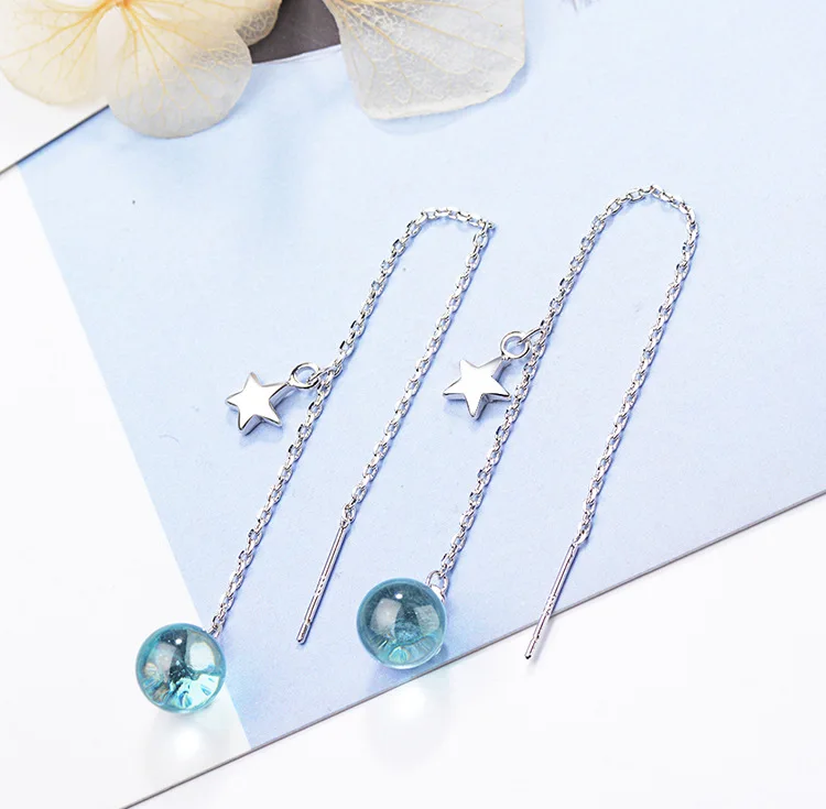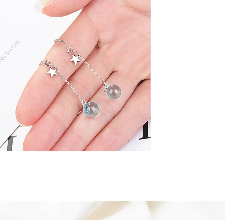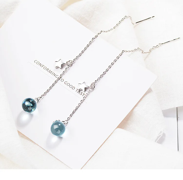 Victoria’s Vogue New Fashion Personality Long Tassel 925 Sterling Silver Jewelry Blue Planet Ball Ear Line Crystal Star Dangle Earrings