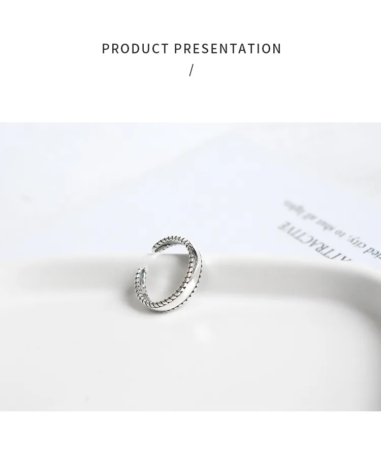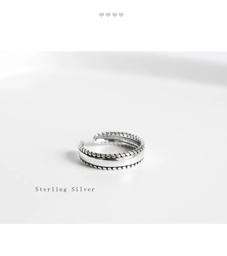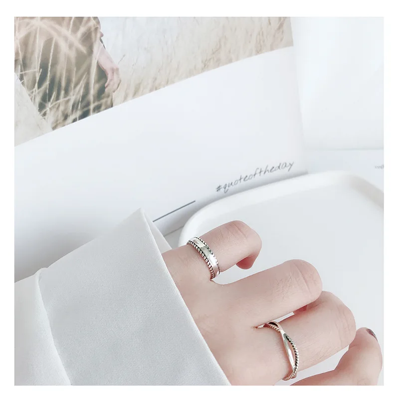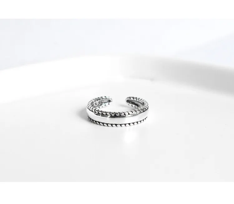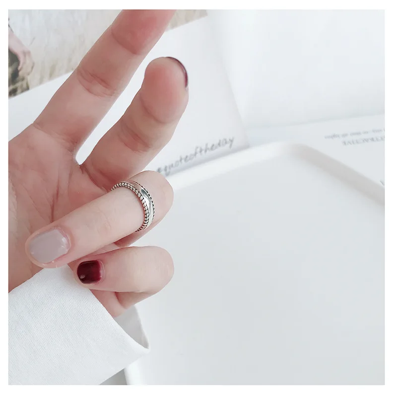 Victoria’s Vogue New Fashion Personality Middle Glossy Retro Female 925 Sterling Silver Jewelry Simple On Both Sides Twist Rings