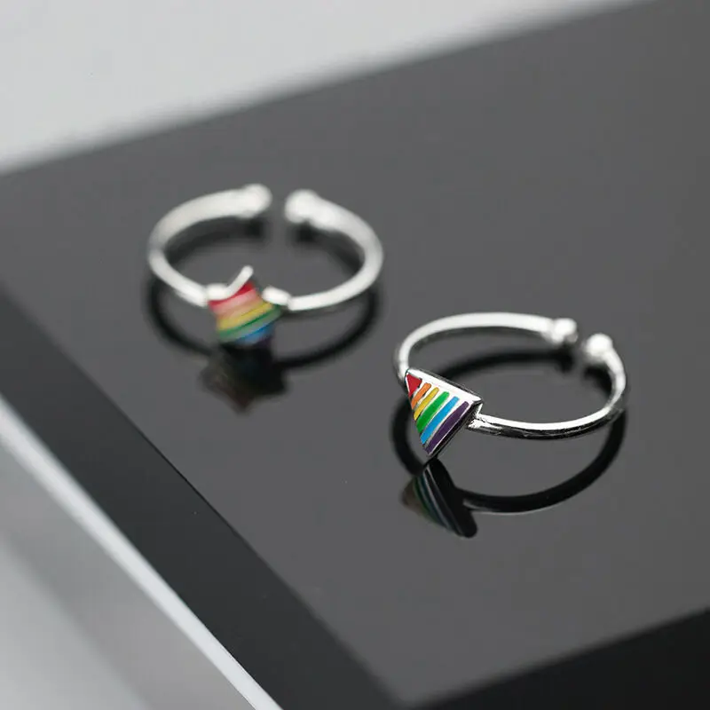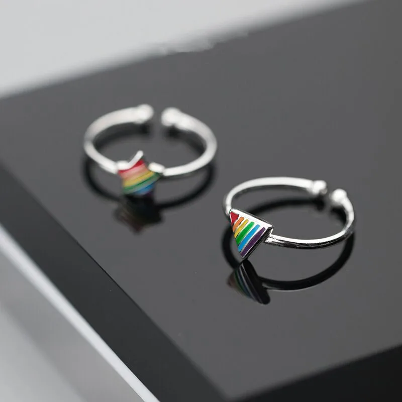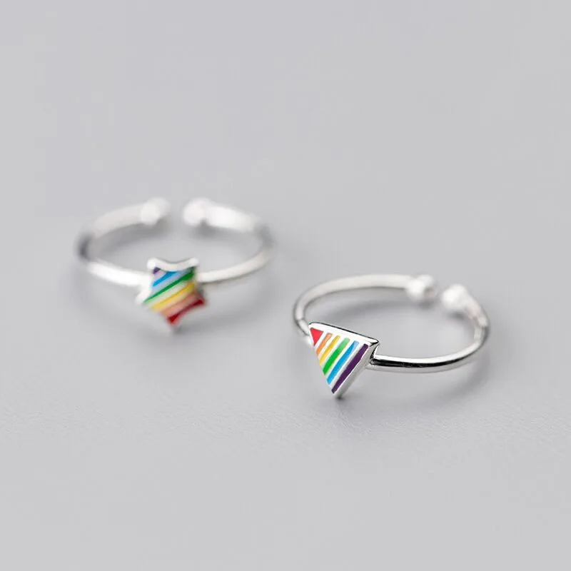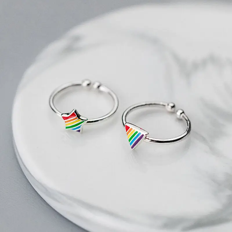 victoria’s vogue New Fashion Simple Color Triangle Five-pointed Star 925 Sterling Silver Jewelry Temperament Geometric Opening Rings