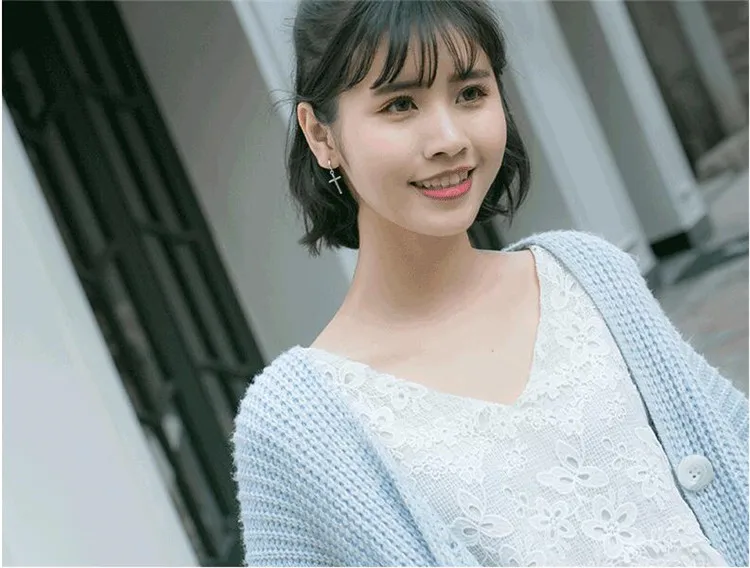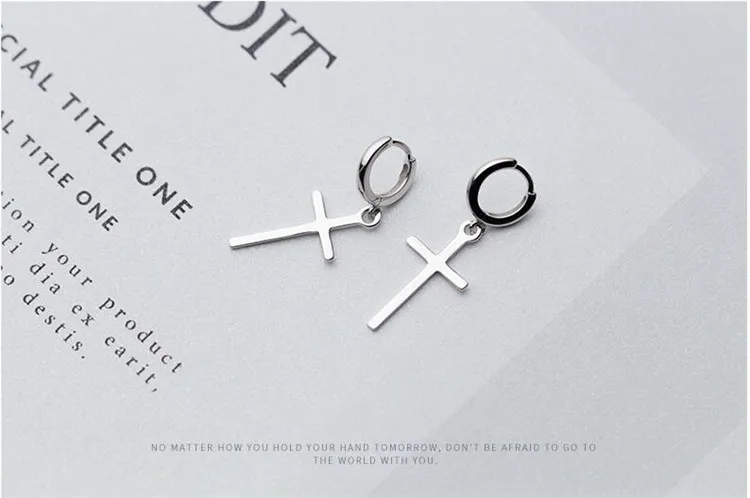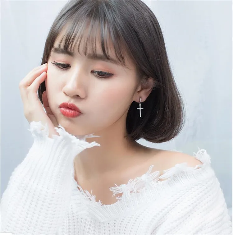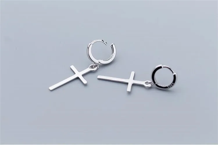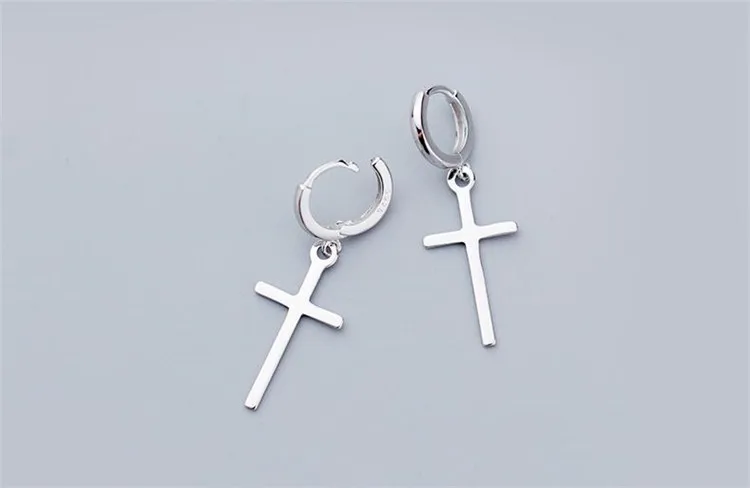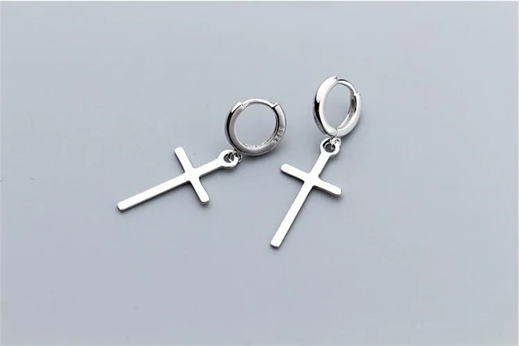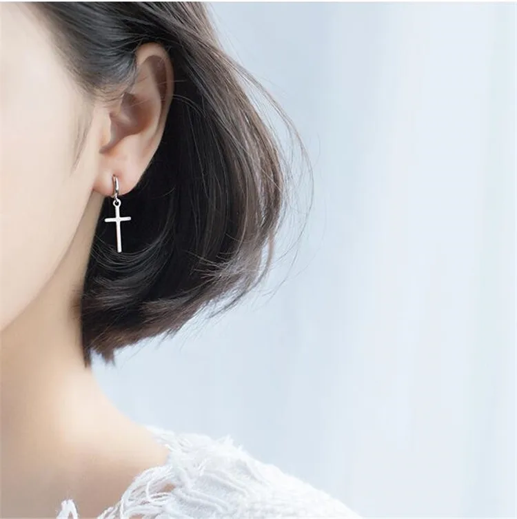 Victoria’s Vogue New Fashion Simple Cross 925 Sterling Silver Jewelry Ear Hook Temperament Popular Man And Women Earrings