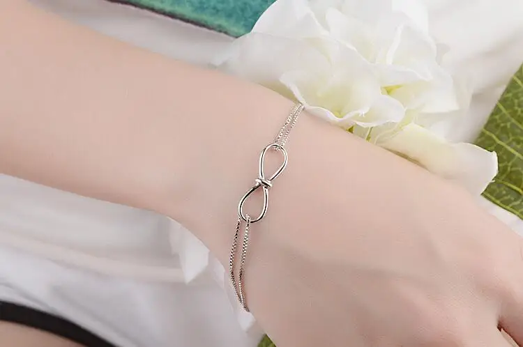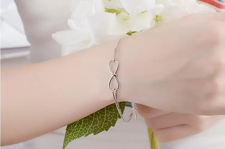 Victoria’s Vogue New Fashion Simple Personality 925 Sterling Silver Jewelry Fresh Girlfriends Couple Sister Love Bow Popular Bracelets