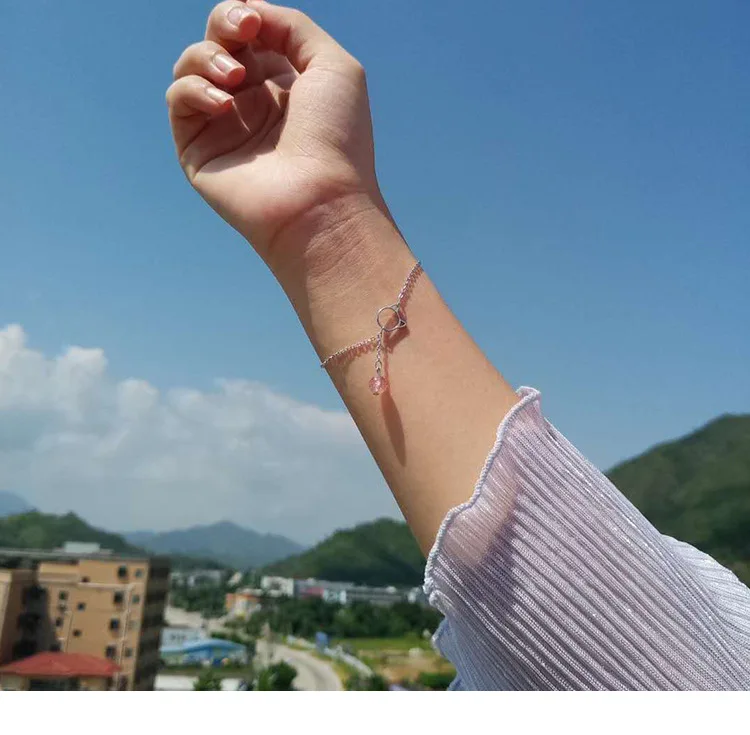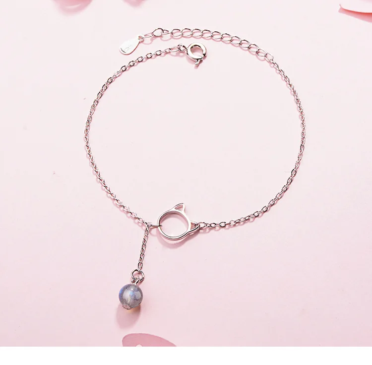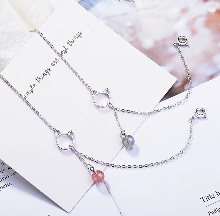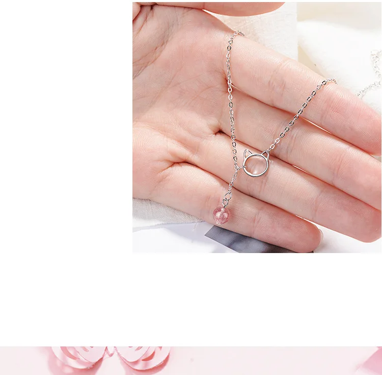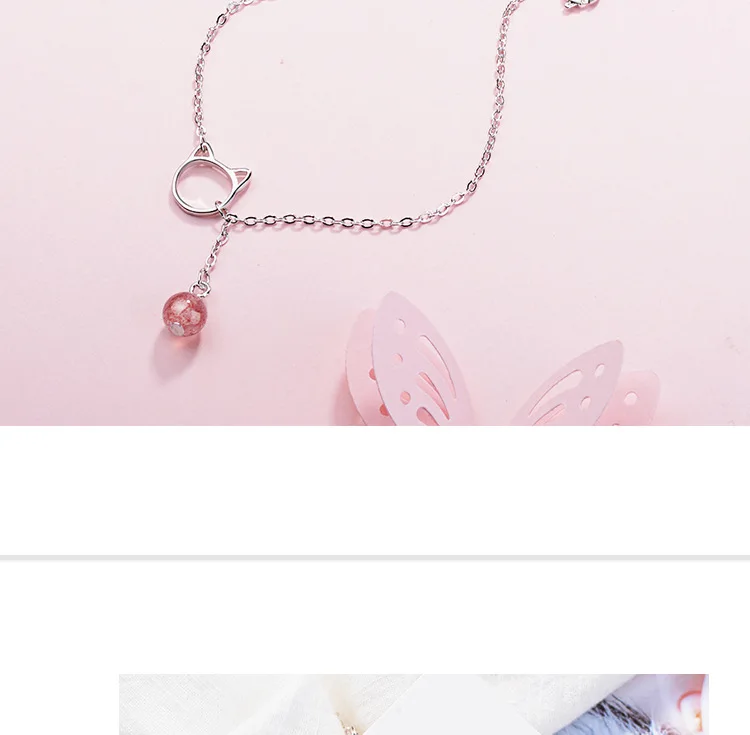 Victoria’s Vogue New Fashion Temperament Cute Animal 925 Sterling Silver Jewelry Hollow Cat Strawberry Crystal Gift Bracelets