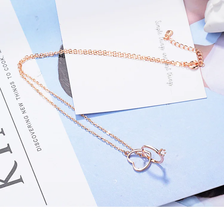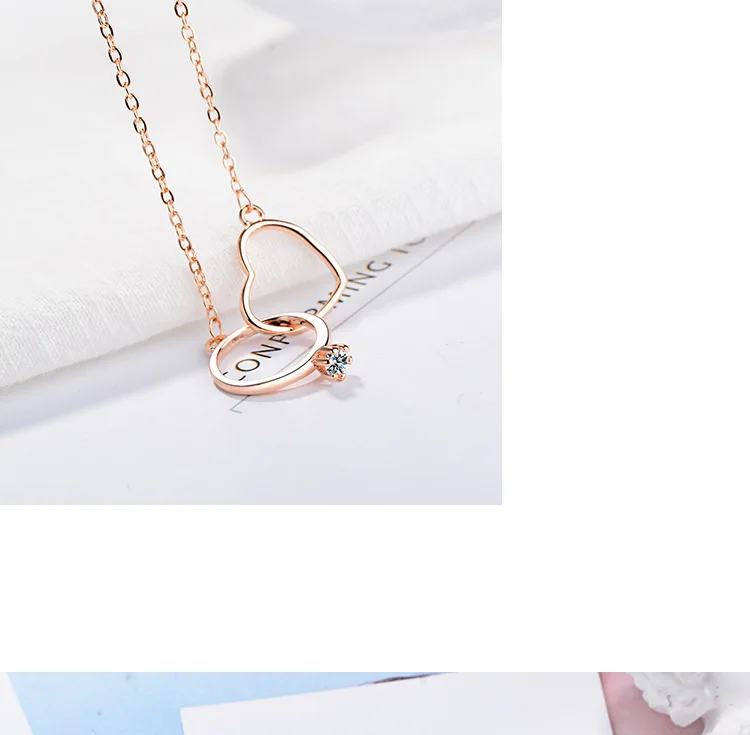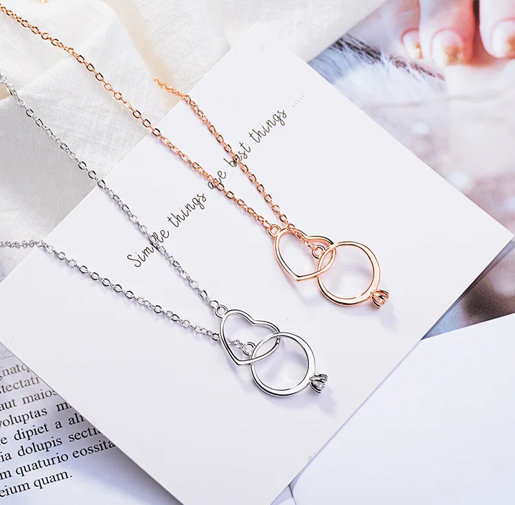 Victoria’s Vogue New Fashion Temperament Exquisite 925 Sterling Silver Jewelry Female Double Circle Crystal Heart Shaped Love Necklaces