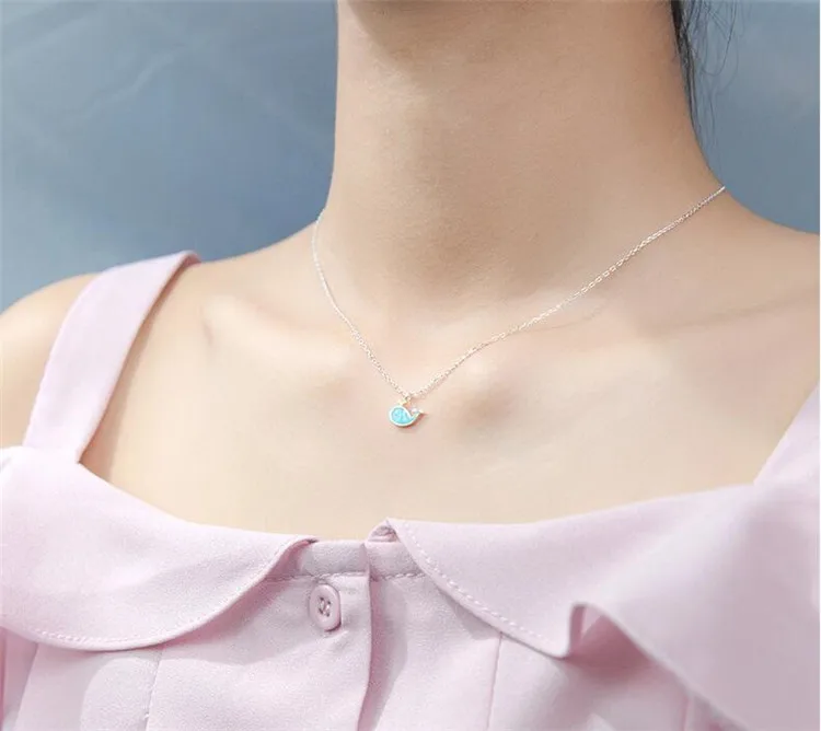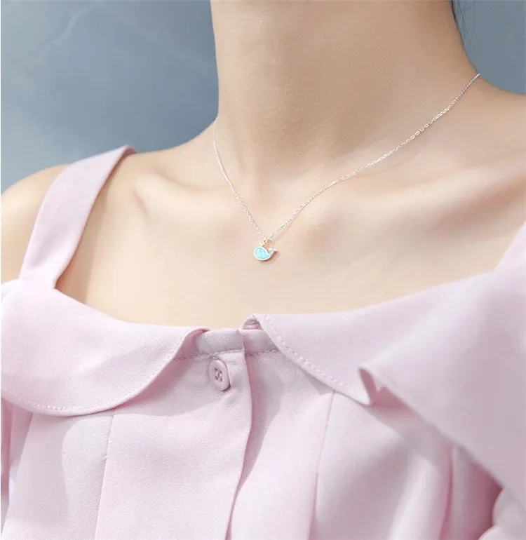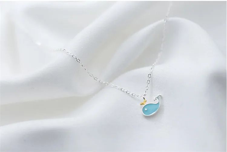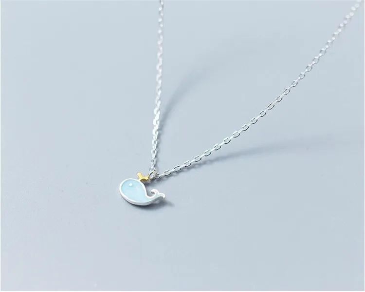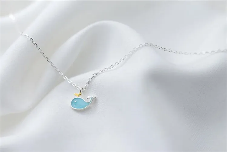 Victoria’s Vogue New Fashion Temperament Popular Sweet Animal 925 Sterling Silver Jewelry Blue Cat Little Whale Dolphin Fish Women Necklaces