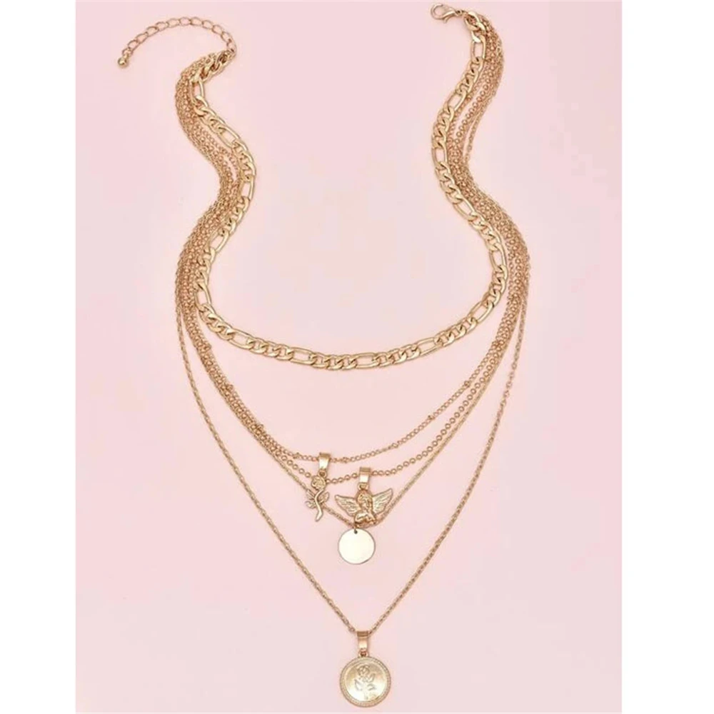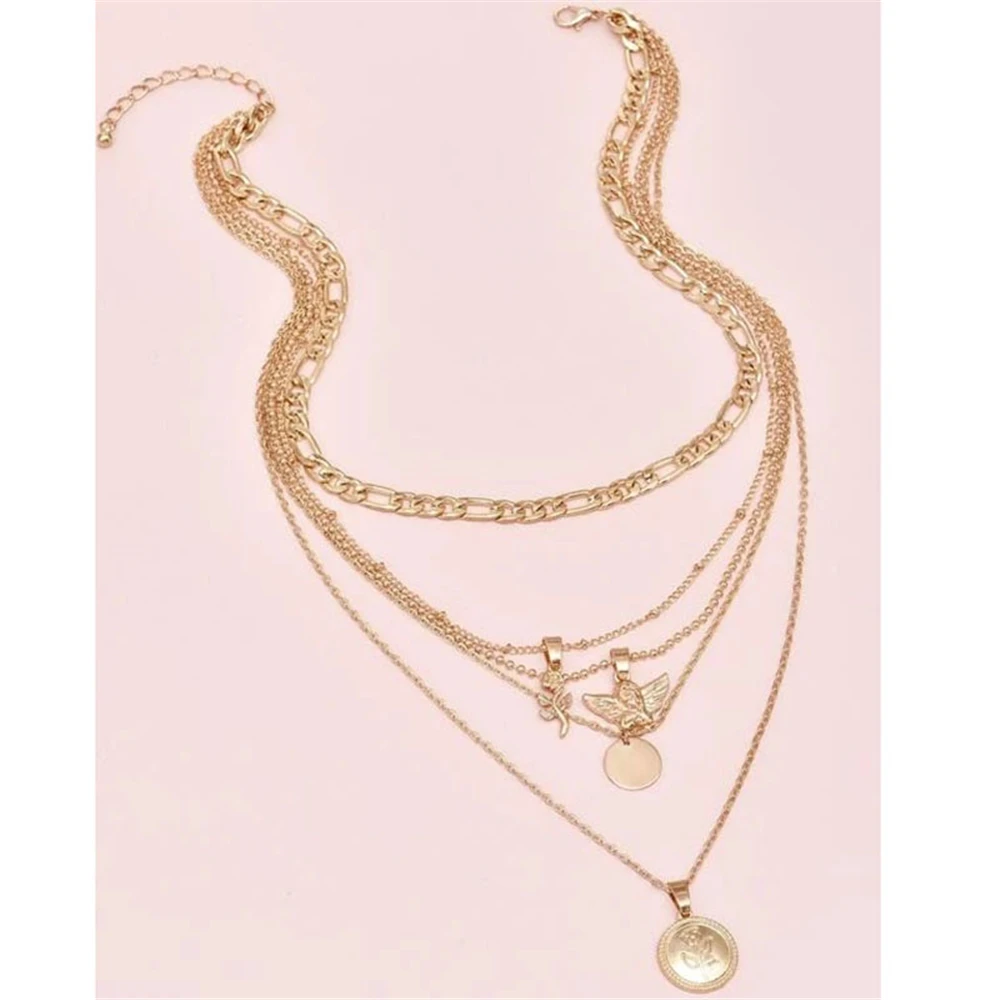 victoria’s vogue New Fashion Vintage Gold Coin Rose Angel Disc Pendant Necklaces For Women Female Multilevel Chain Collar Jewelry Gift Wholesale