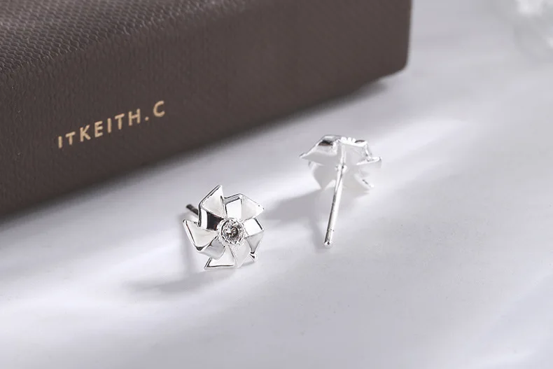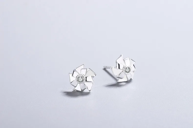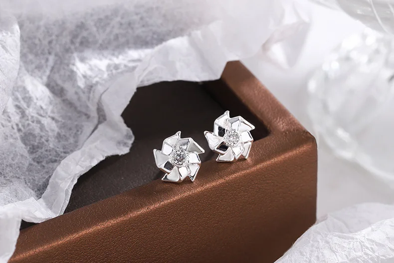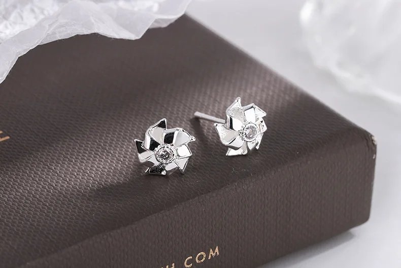 victoria’s vogue New Fashion Windmill Zircon 925 Sterling Silver Jewelry Simple Creative Sweet Three-dimensional Stud Earrings