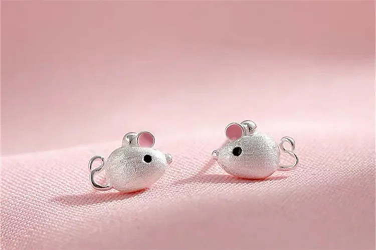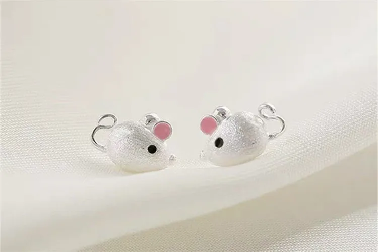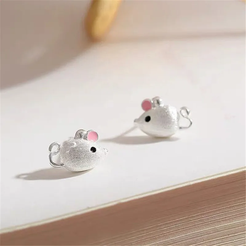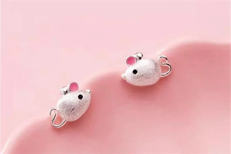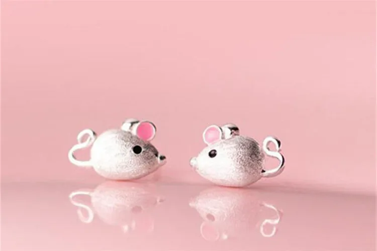 Victoria’s Vogue New Fresh And lovely Lady Pink Ears Small Mouse 925 Sterling Silver Jewelry Personality Animal Exquisite Stud Earrings