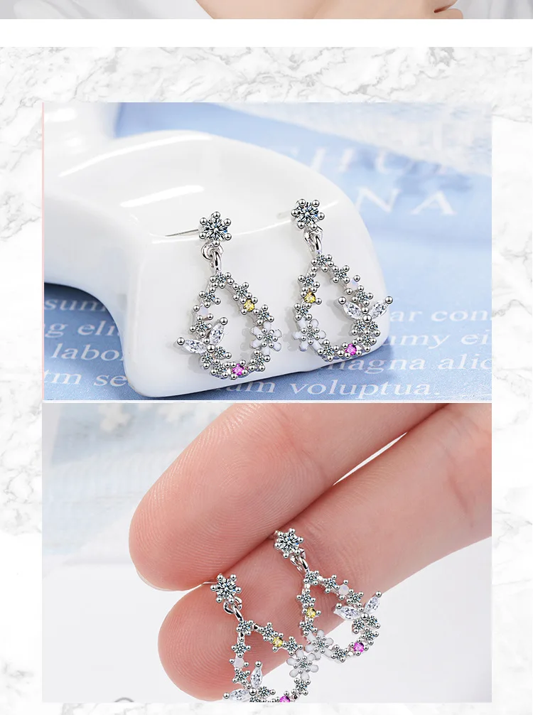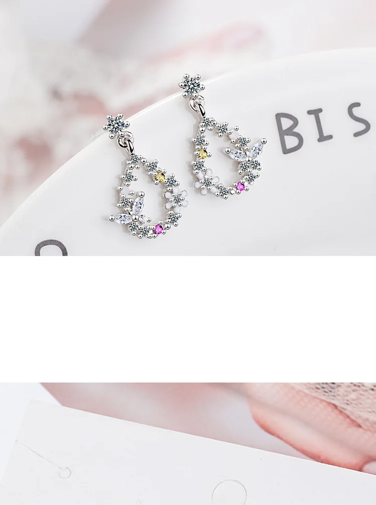 Victoria’s Vogue New Fresh Beautiful Water Drop Temperament Flower 925 Sterling Silver Jewelry Personality Butterfly Women Stud Earrings