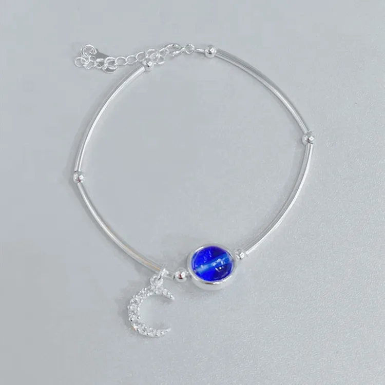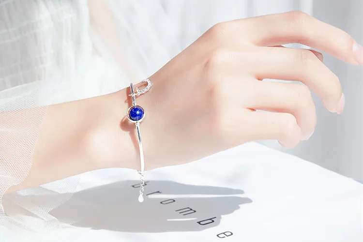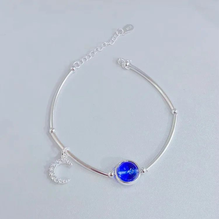 Victoria’s Vogue New Fresh Blue Crystal Exquisite Fashion 925 Sterling Silver Jewelry Sweet Personality Moon Popular Temperament Bracelets