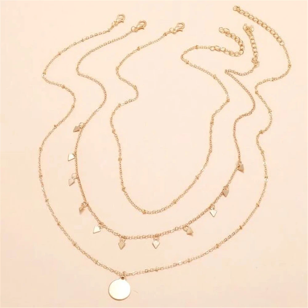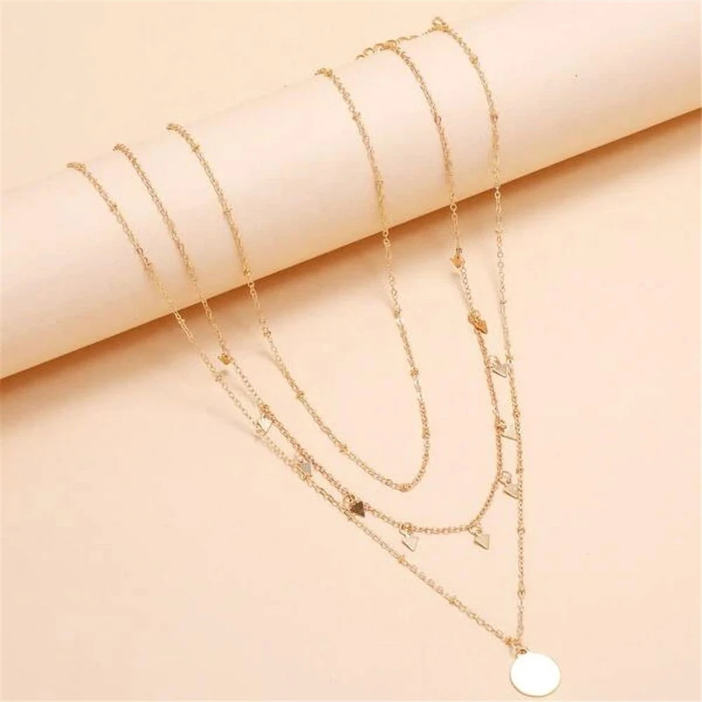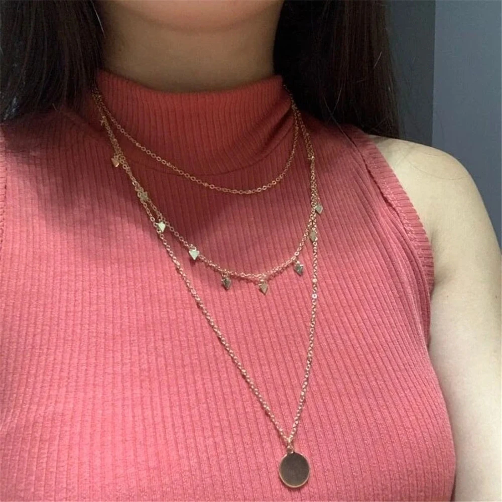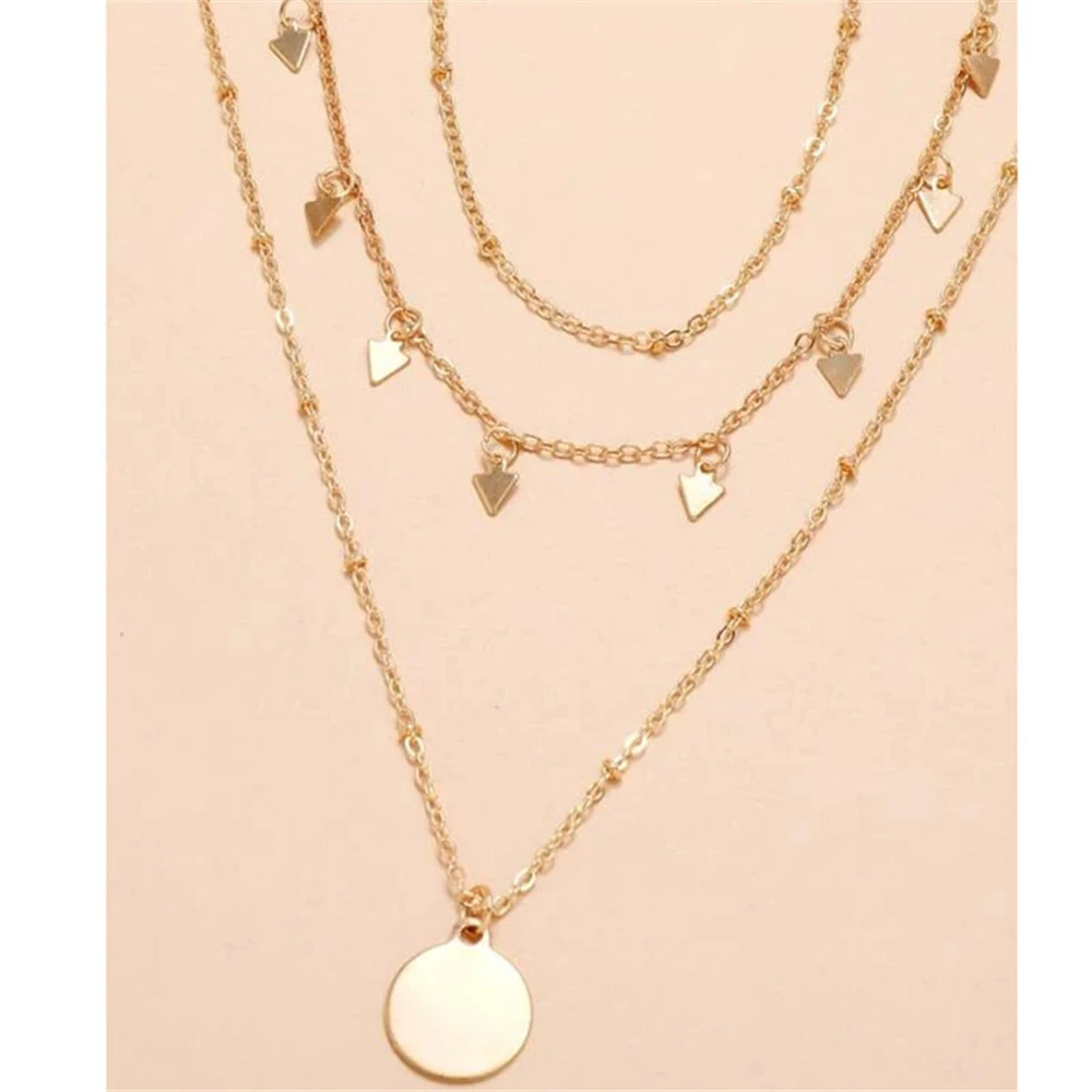 victoria’s vogue New Gold Fashion Simple Chain TMultilevel Necklaces For Women Necklace Riangle Round Pendant Female Jewelry Gift Wholesale