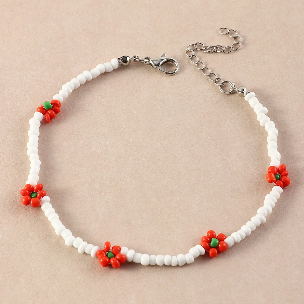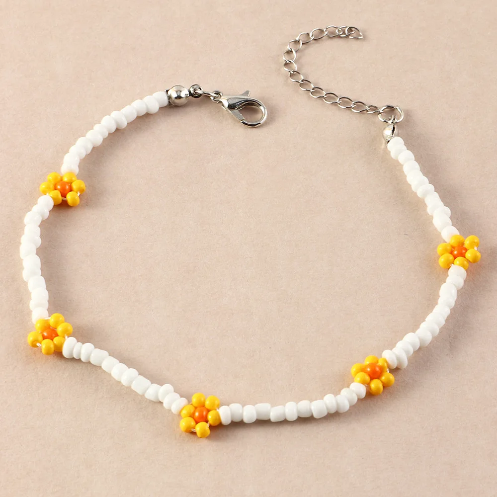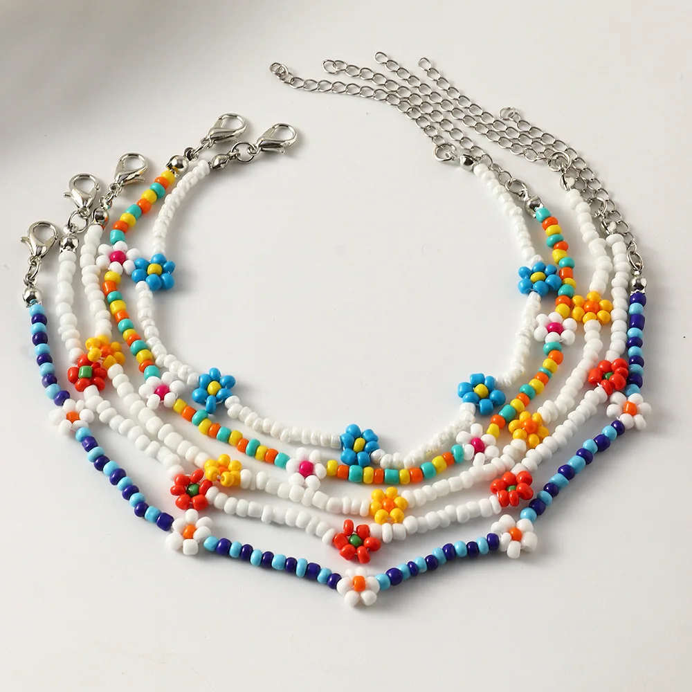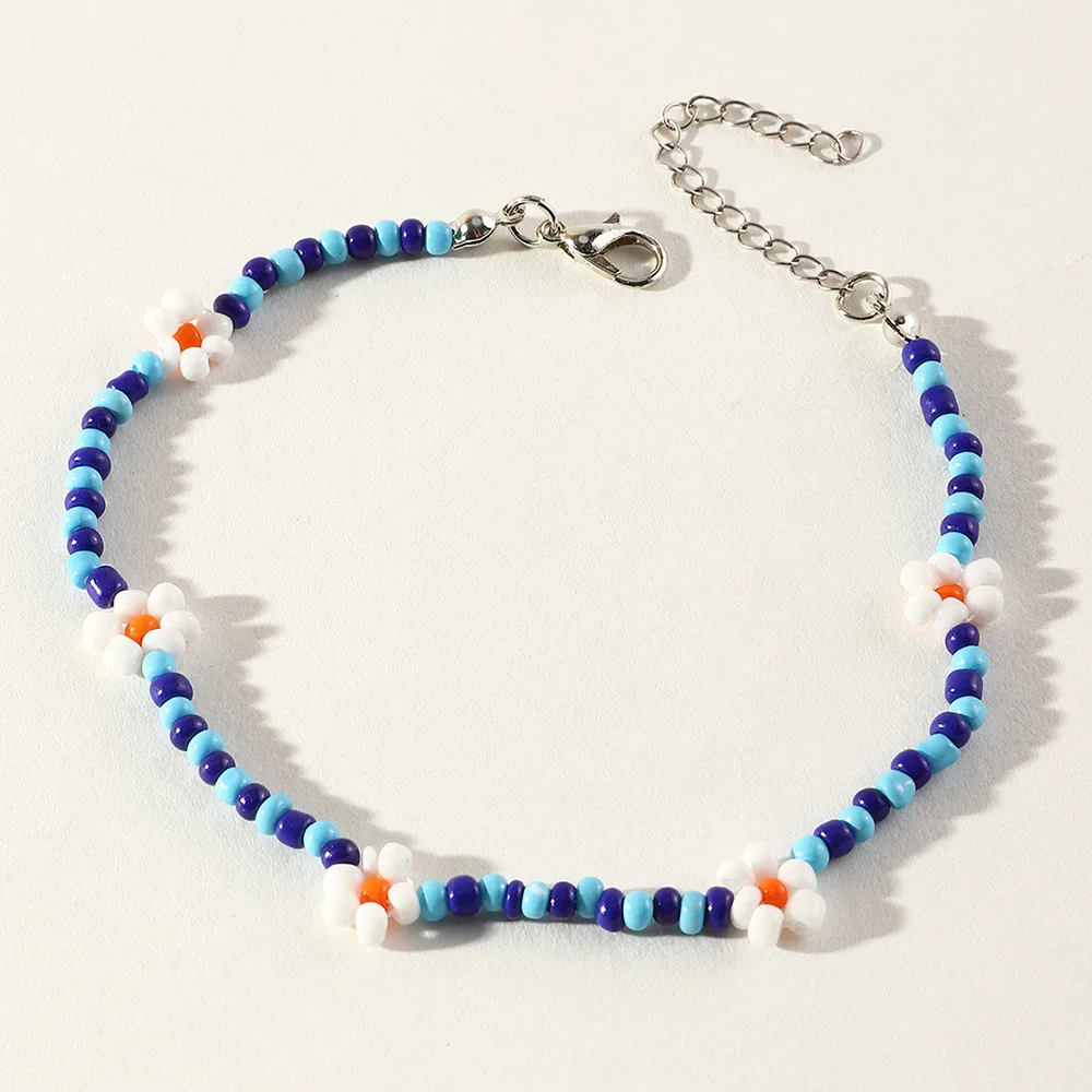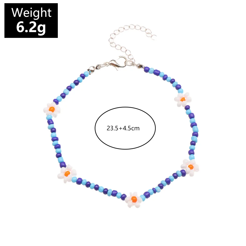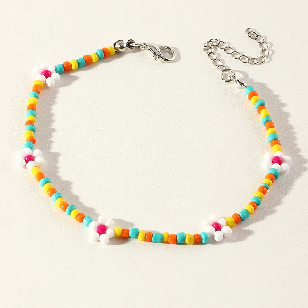 Victoria’s Vogue New Hip Hop Flower Bead Anklet Bracelet For Women Bohemian Colorful Daisy Beads Anklets Handmade Elastic Strech Ankle Jewelry