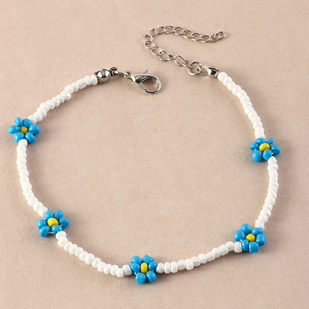 Victoria’s Vogue New Hip Hop Flower Bead Anklet Bracelet For Women Bohemian Colorful Daisy Beads Anklets Handmade Elastic Strech Ankle Jewelry