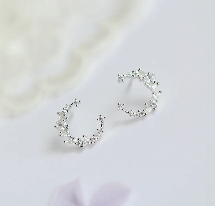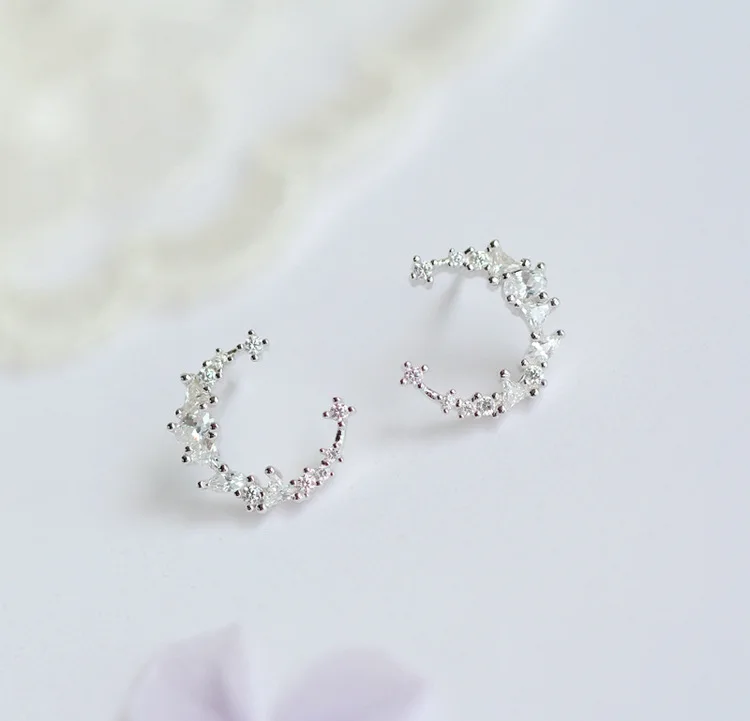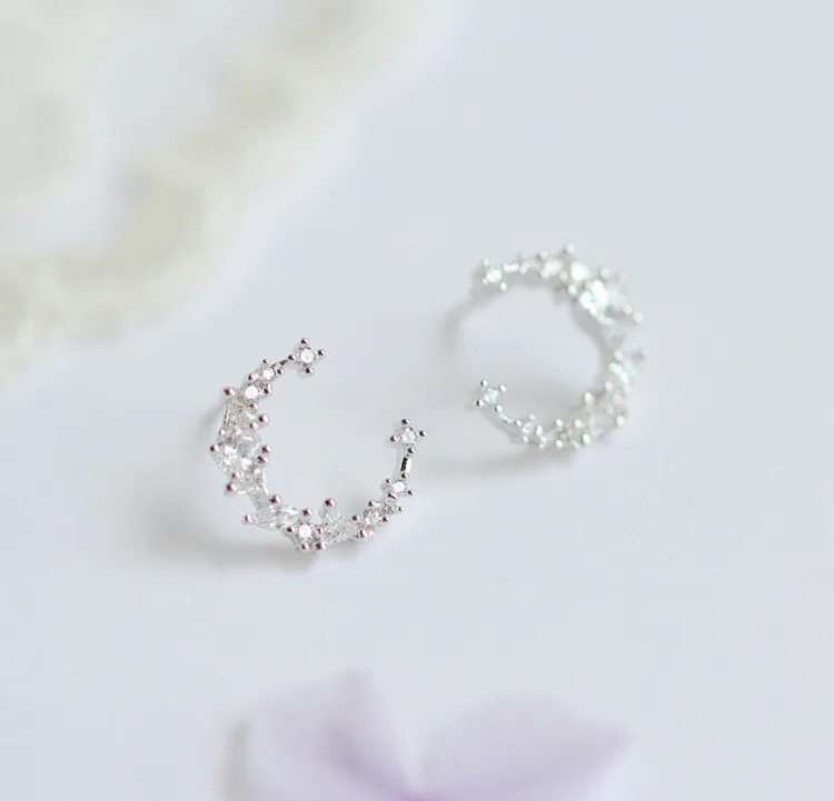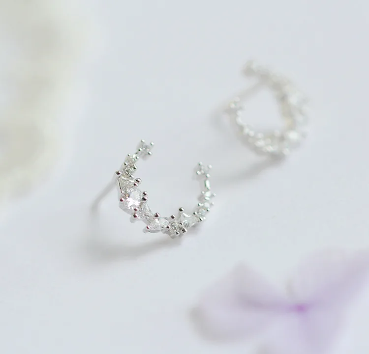 victoria’s vogue New Hot Fashion 925 Sterling Silver Crystal Moon Earrings for Women Girls Gift Fashion Statement Jewelry