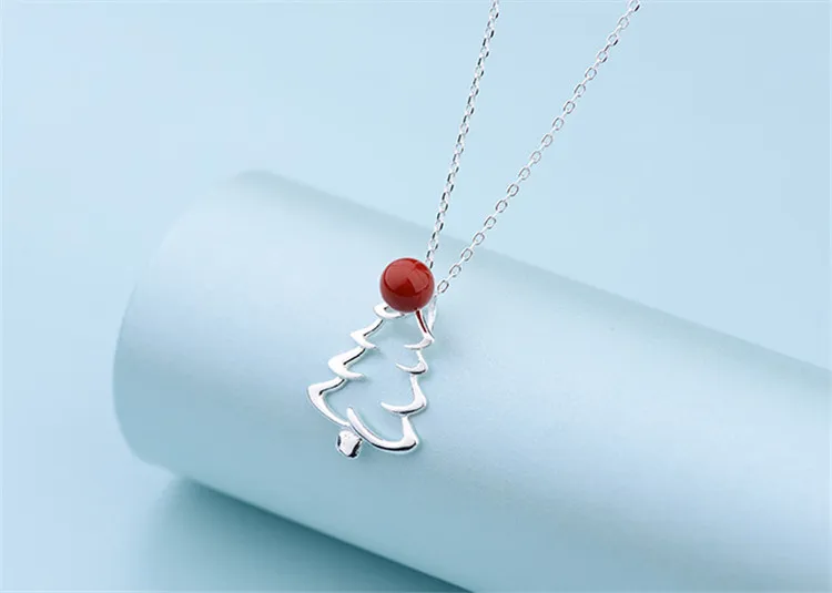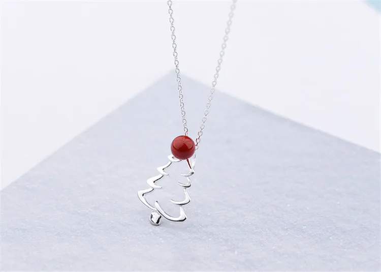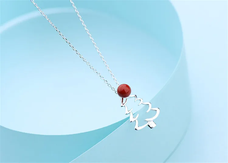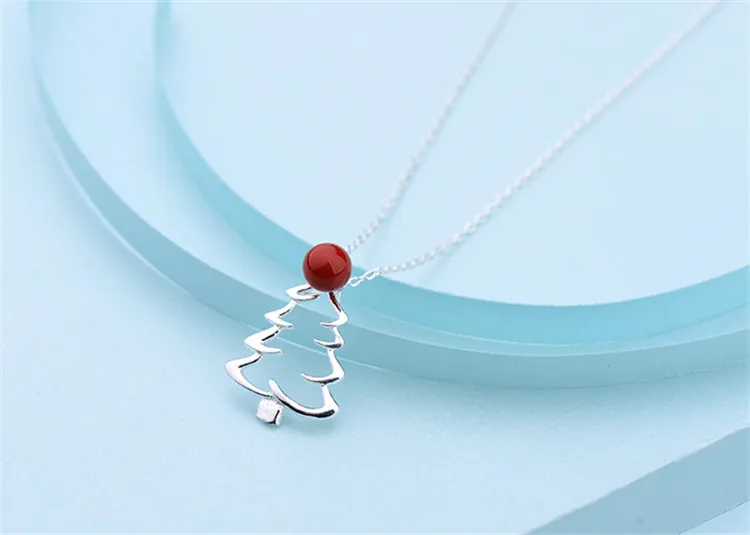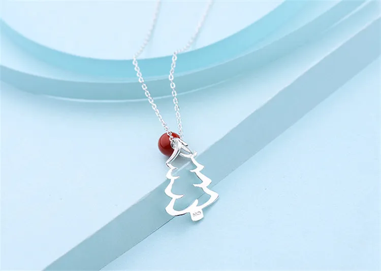 victoria’s vogue New Hot Sale 925 Sterling Silver Jewelry Christmas Tree Red Fruit Personality Clavicle Chain Pendant Exquisite Necklaces