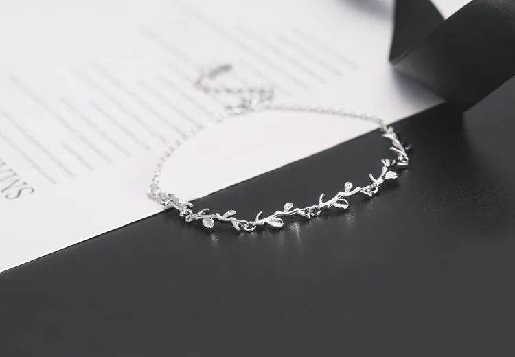 Victoria’s Vogue New Literary Simple Leaf 925 Sterling Silver Jewelry Personality Branch Flowers Creative Fashion Female Gift Bracelets