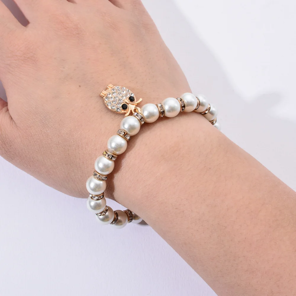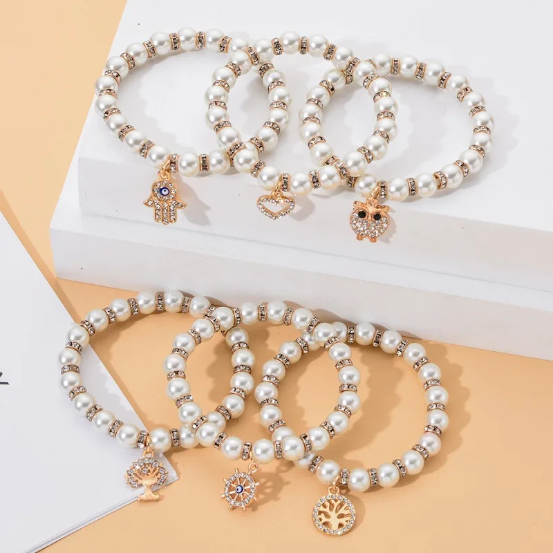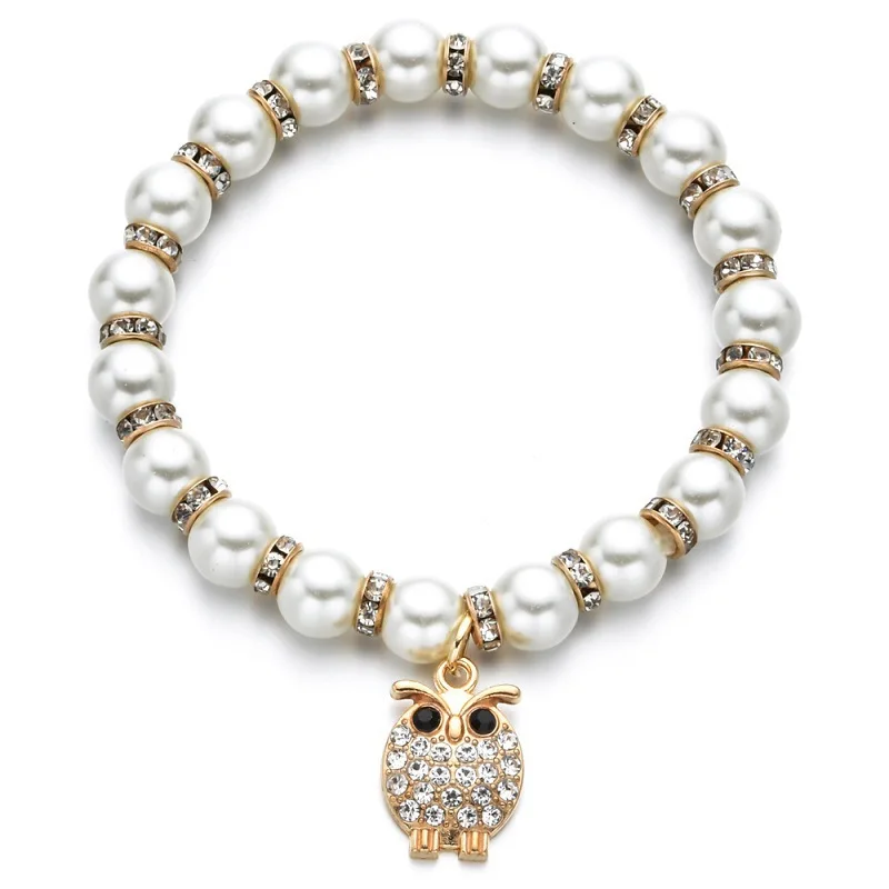 Victoria’s Vogue New Luxury Imitation Pearls Beads Elastic Rhinestone Bracelets For Women Life Tree Owl Heart Bangle Wedding Bridal Jewelry Gift