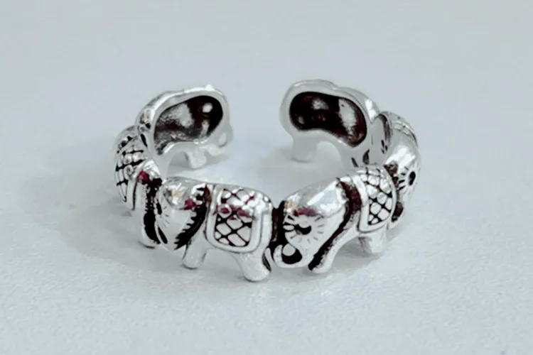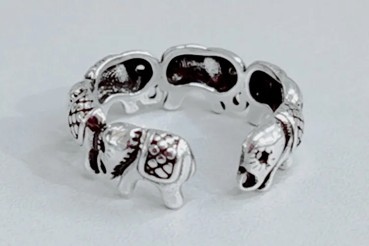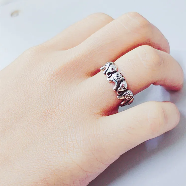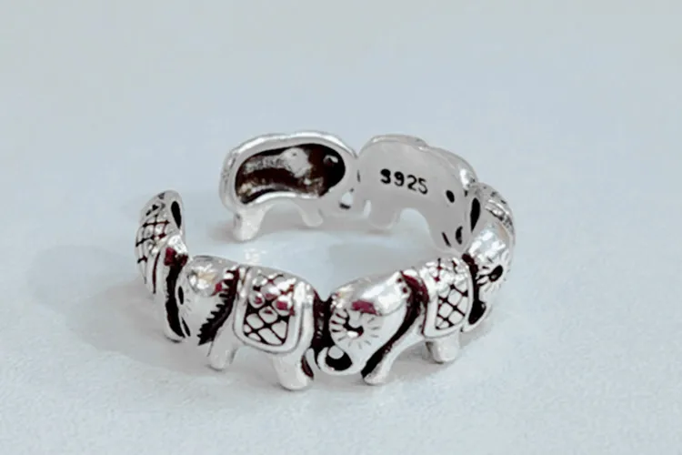 Victoria’s Vogue New Minimalist Retro Thai Silver Animal 925 Sterling Silver Jewelry Personality Elephant Group Exquisite Opening Rings