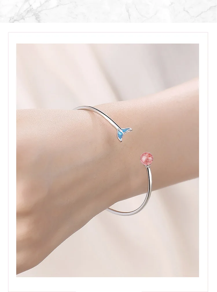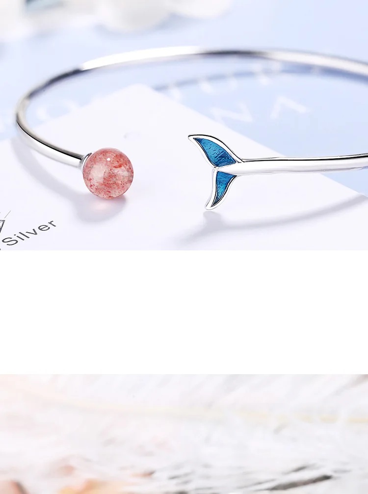 Victoria’s Vogue New Personality Fishtail Natural Strawberry Crystal Bracelets Cute Animal 925 Sterling Silver Fashion Jewelry Fish Bangles