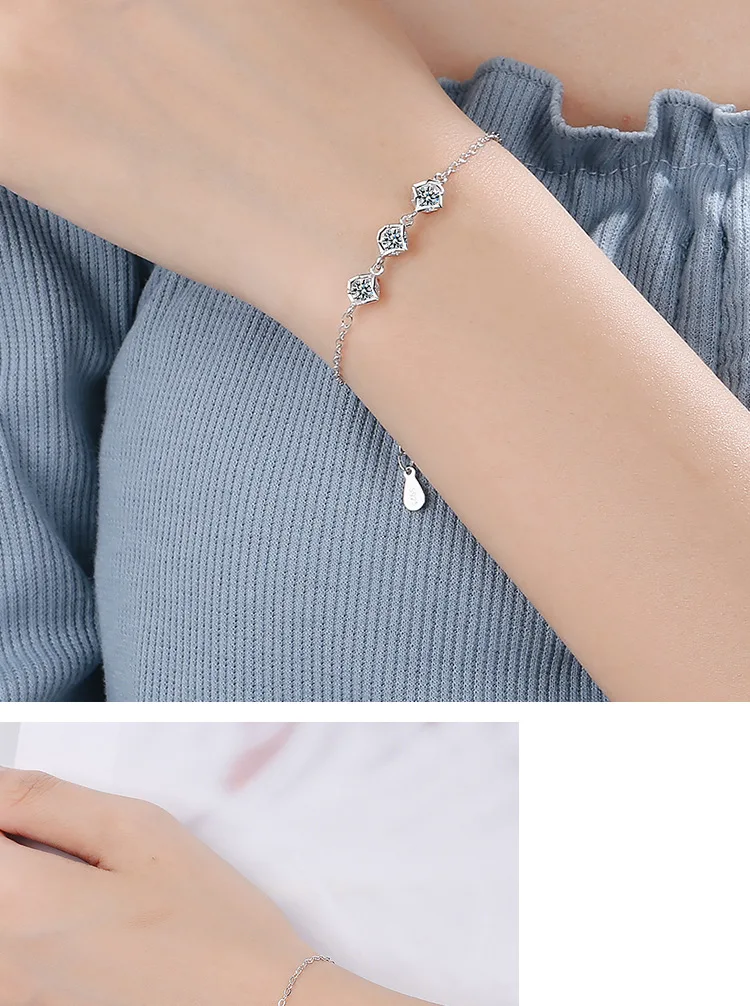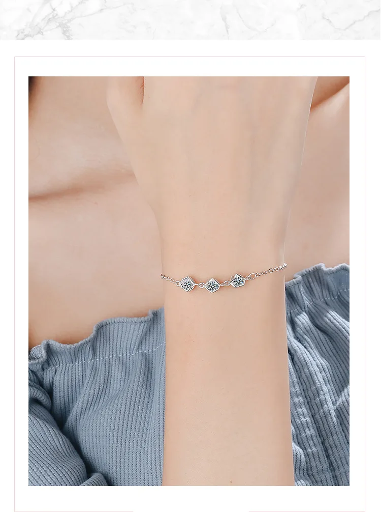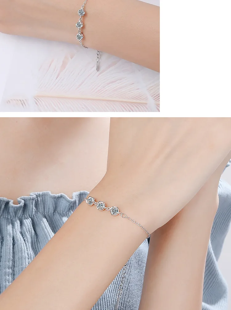 Victoria’s Vogue New Personality Stereoscopic Geometric Cube 925 Sterling Silver Fashion Jewelry Transfer Beads Crystal Women Bracelets
