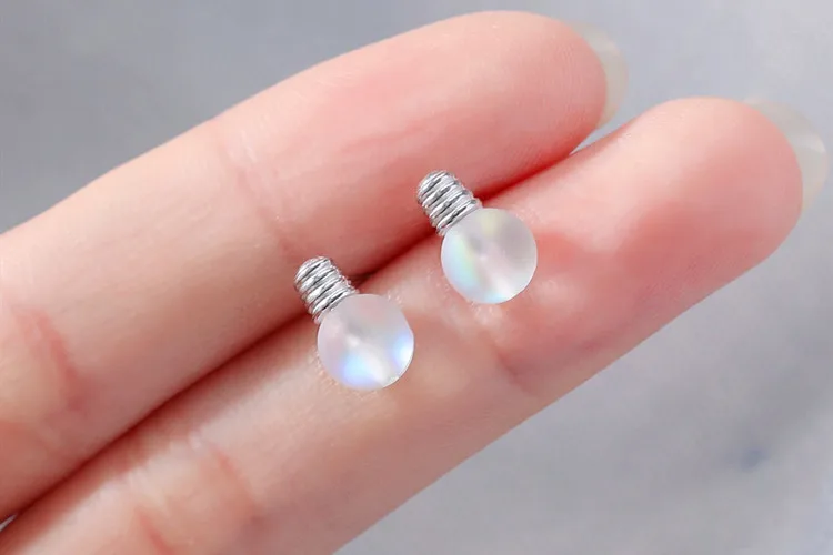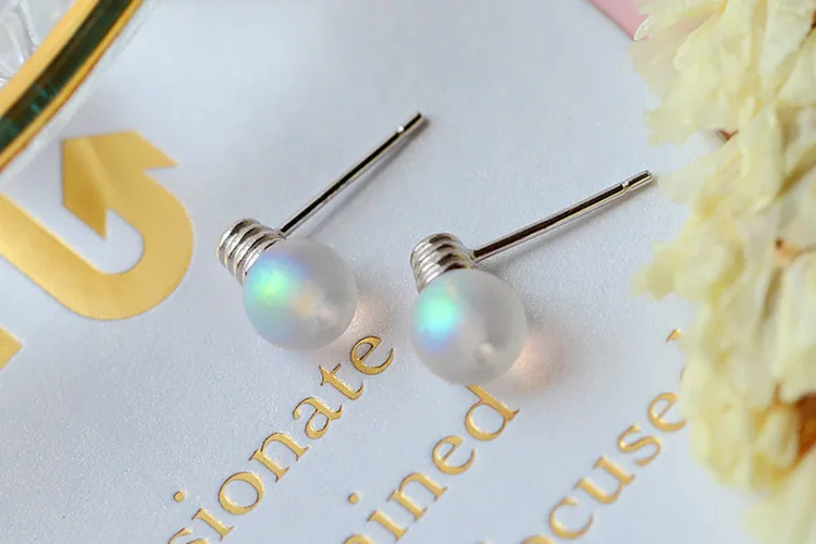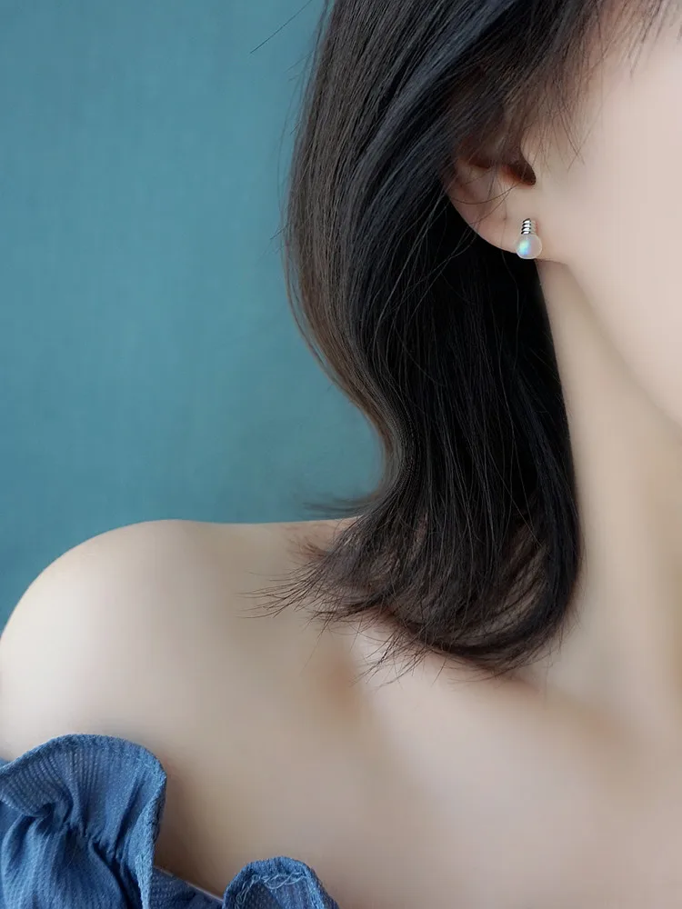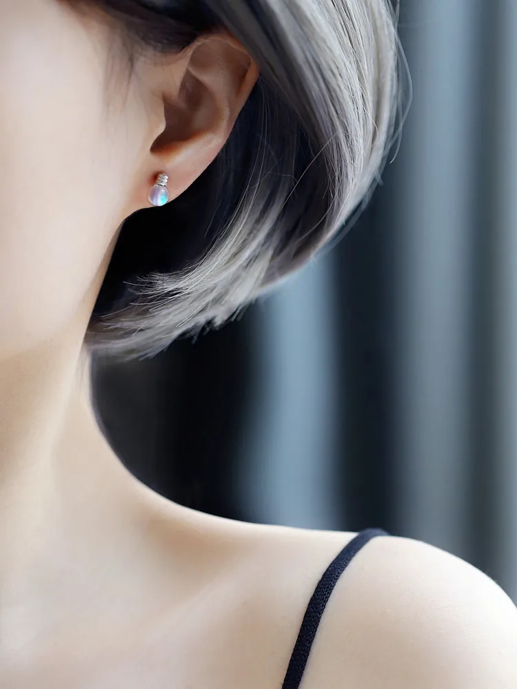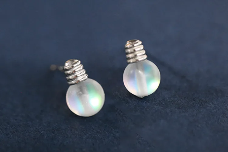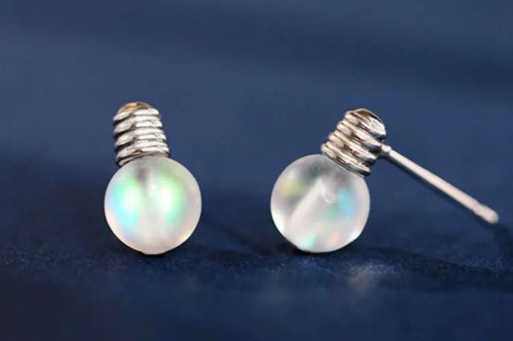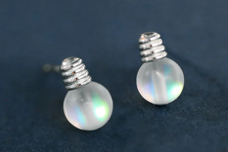 Victoria’s Vogue New Personality Sweet Colorful Moonstone Bulb 925 Sterling Silver Jewelry Compact Temperament Crystal Stud Earrings