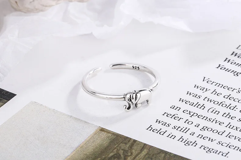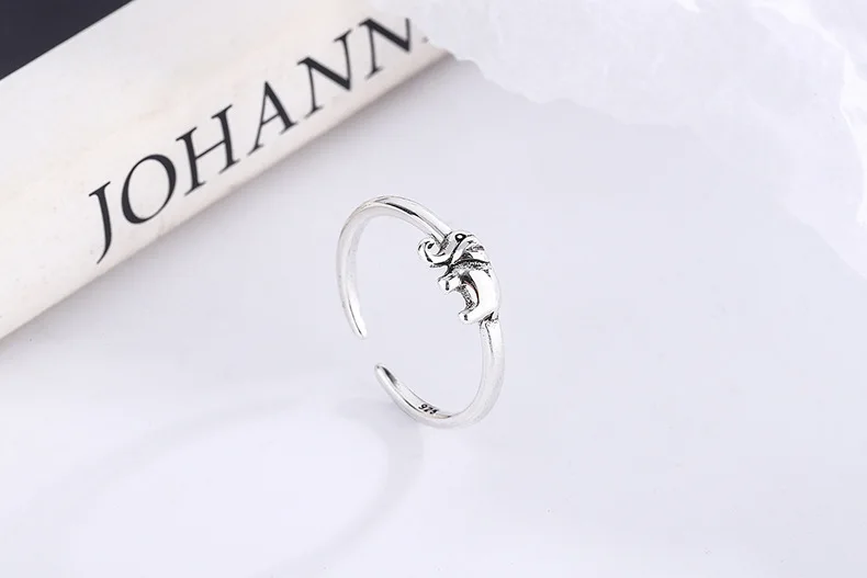 Victoria’s Vogue New Retro Distressed Luck Baby Elephant 925 Sterling Silver Jewelry Ethnic Style Transfer Auspicious Animal Opening Rings