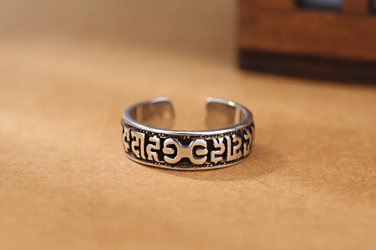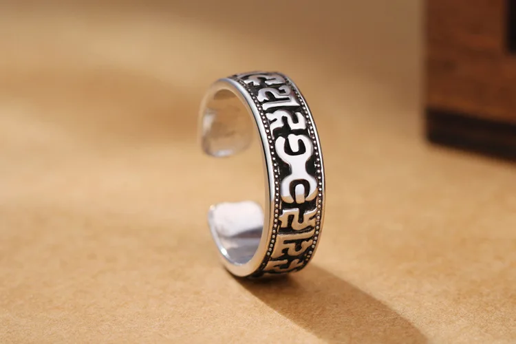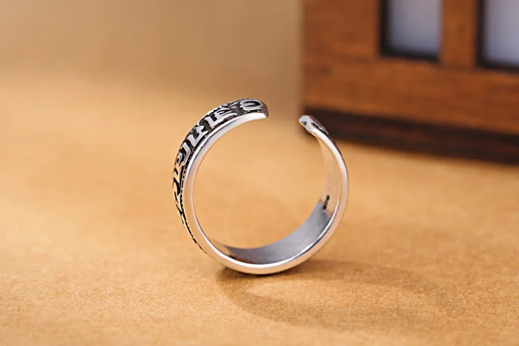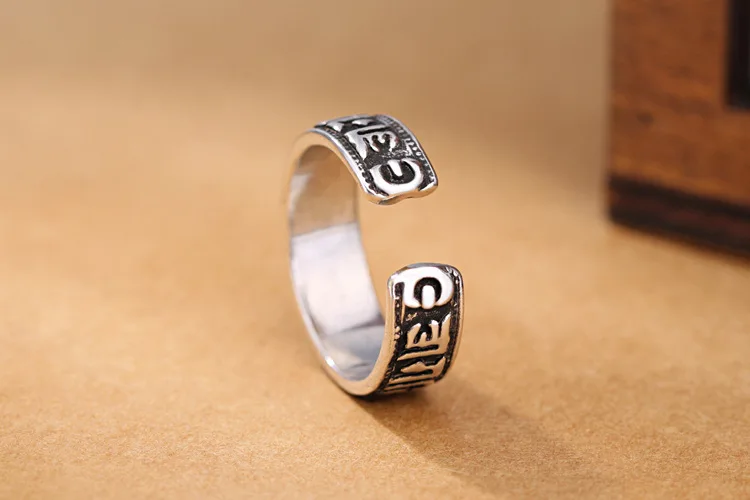 Victoria’s Vogue New Retro European Style 925 Sterling Silver Jewelry Heart Scripture Six-Word Letter Opening Rings