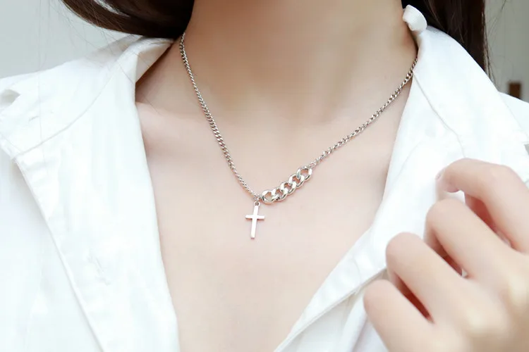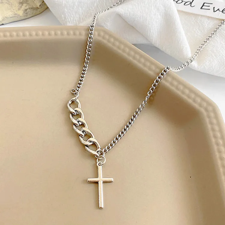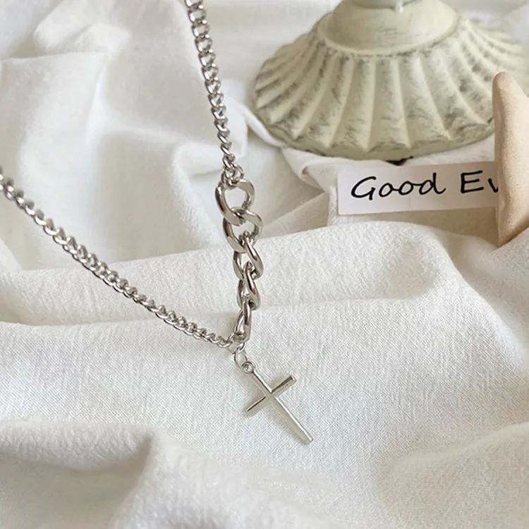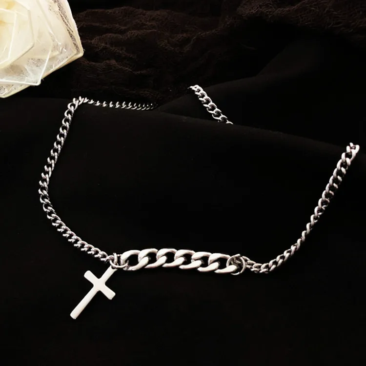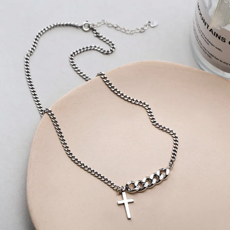 Victoria’s Vogue New Retro Minimalist Trendy Jesus Prayer Cross 925 Sterling Silver Short Exquisite Cross Clavicle Chain Popular Necklaces