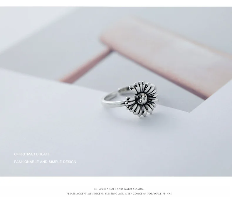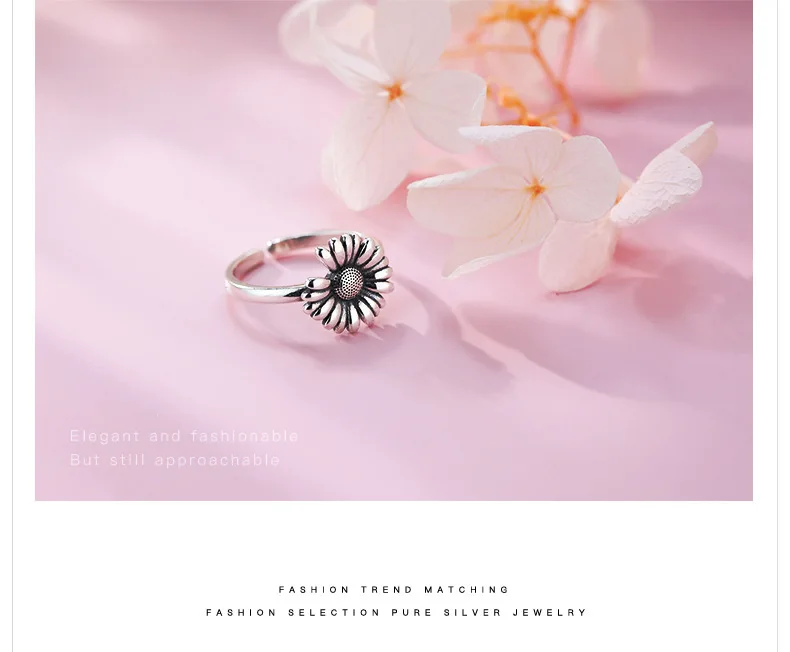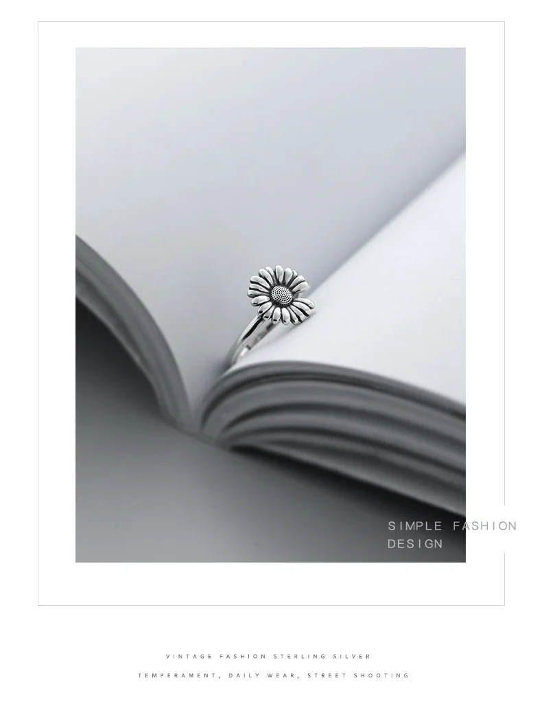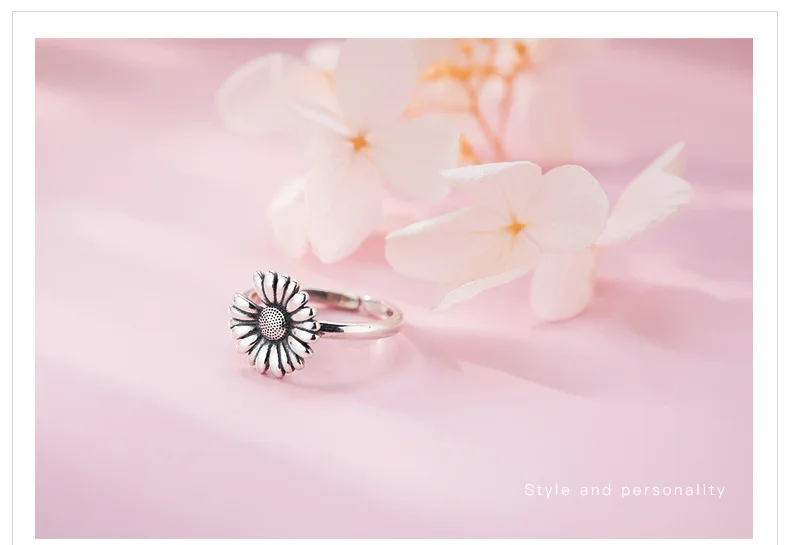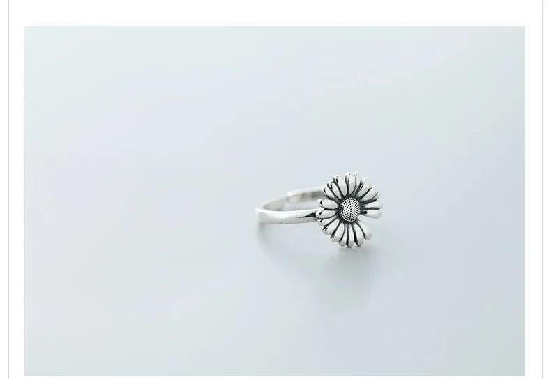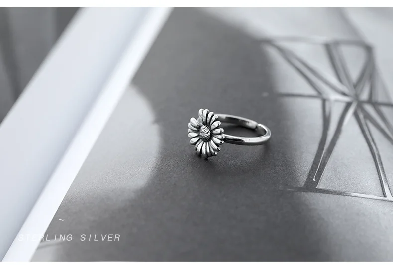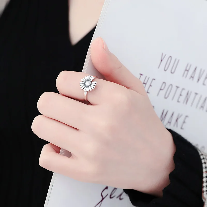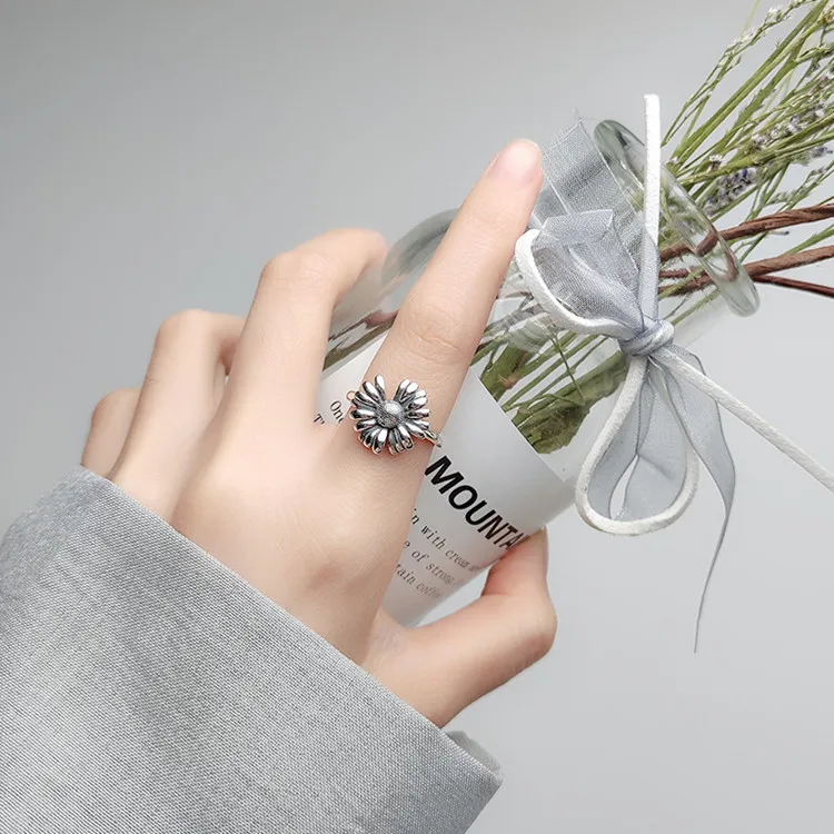 Victoria’s Vogue New Retro Thai Silver Small Daisy Flower Personality 925 Sterling Silver Jewelry Hipster Sunflower Exquisite Opening Rings