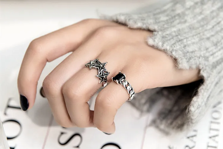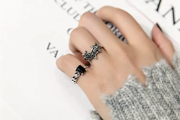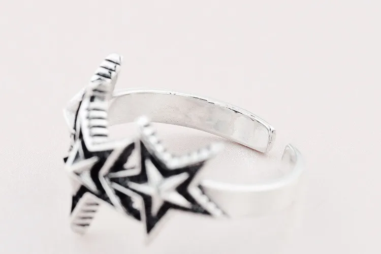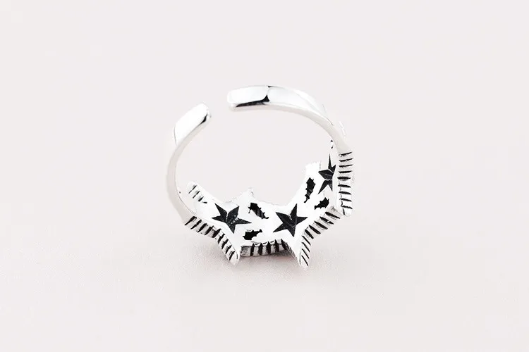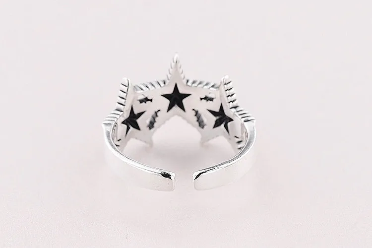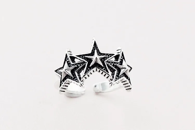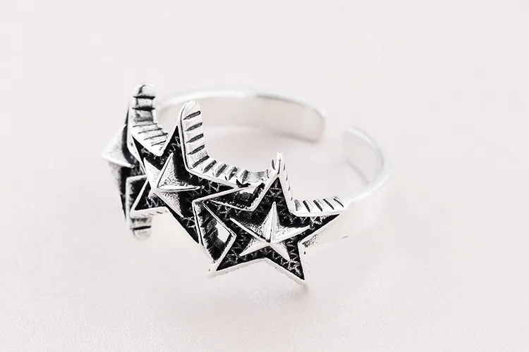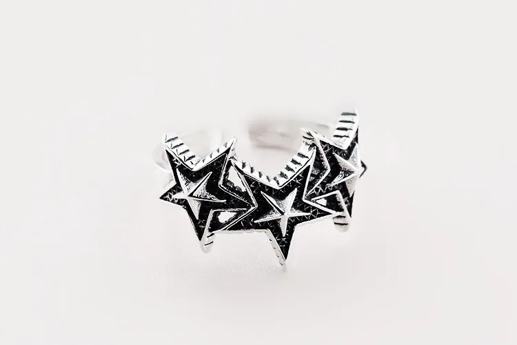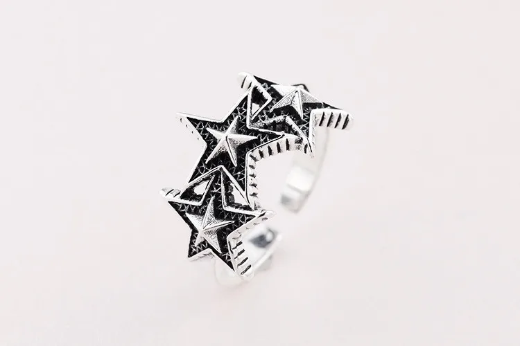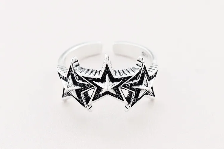 Victoria’s Vogue New Retro Thai Silver Three Big Stars 925 Sterling Silver Jewelry Personality Atmosphere Five-Pointed Star Opening Rings