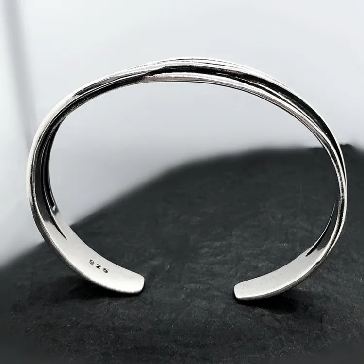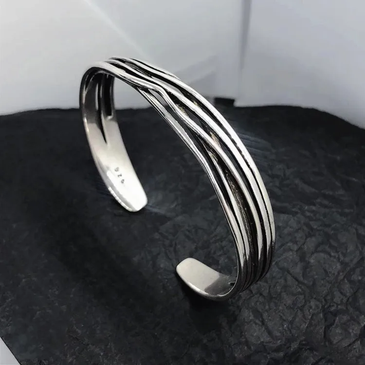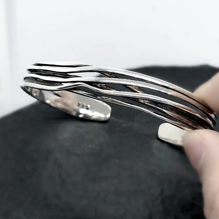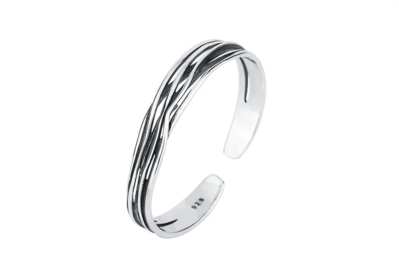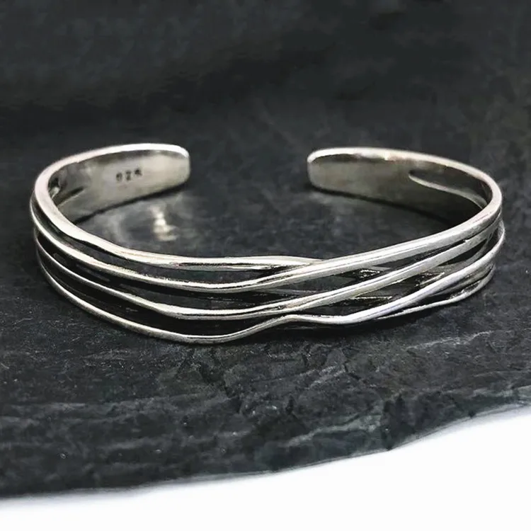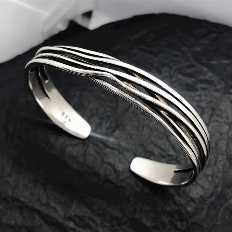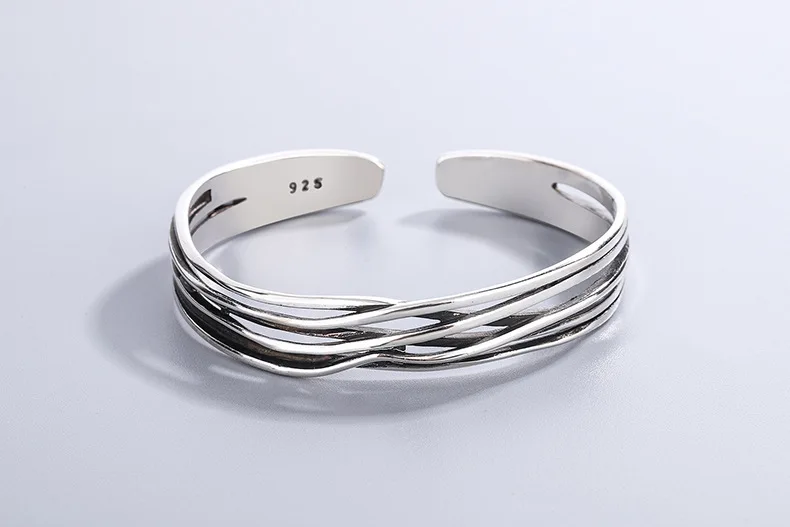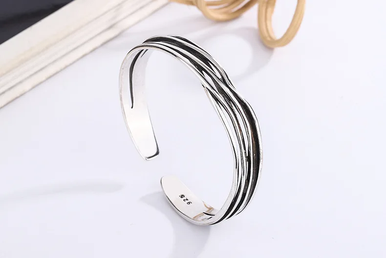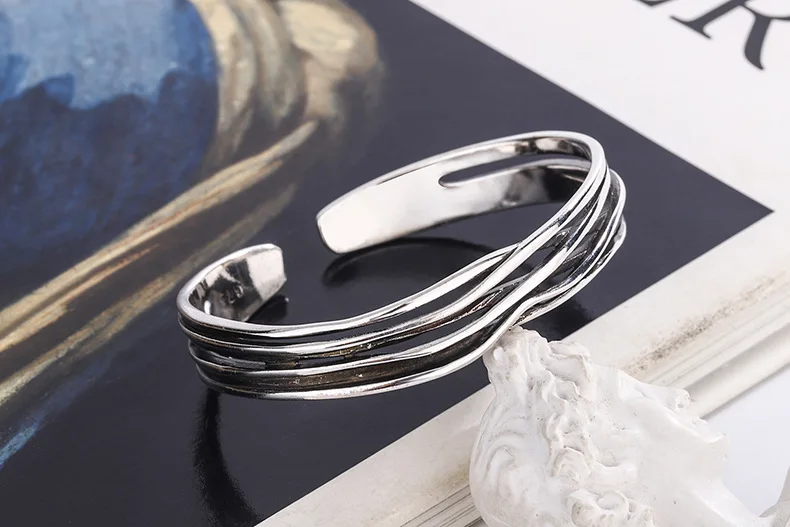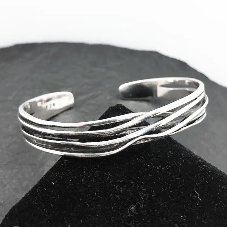 victoria’s vogue New Retro Wave Braided Bracelets 925 Sterling Silver Jewelry Personality Geometric Exquisite Opening Bangles