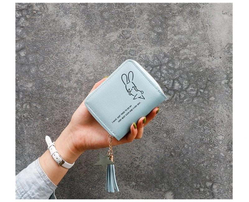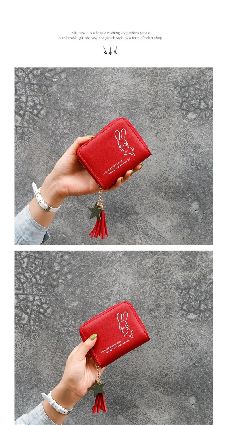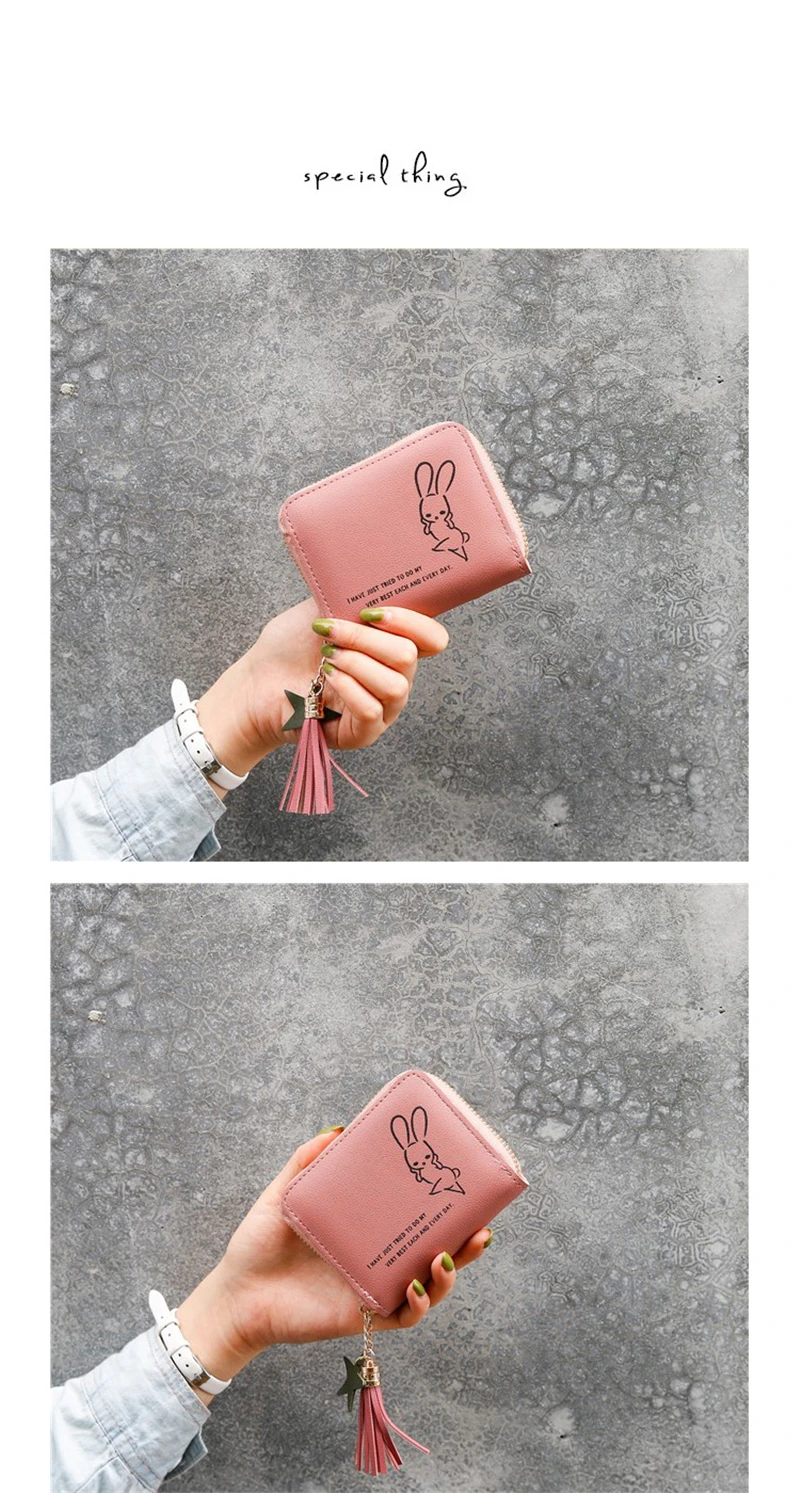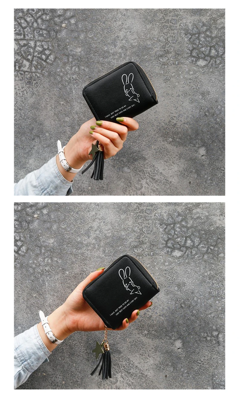 Victoria’s Vogue New Short Paragraph Women’s Zipper Wallet Female Student Cute Cartoon Print Tassels Wild Purse Card Coin Package
