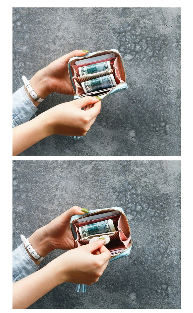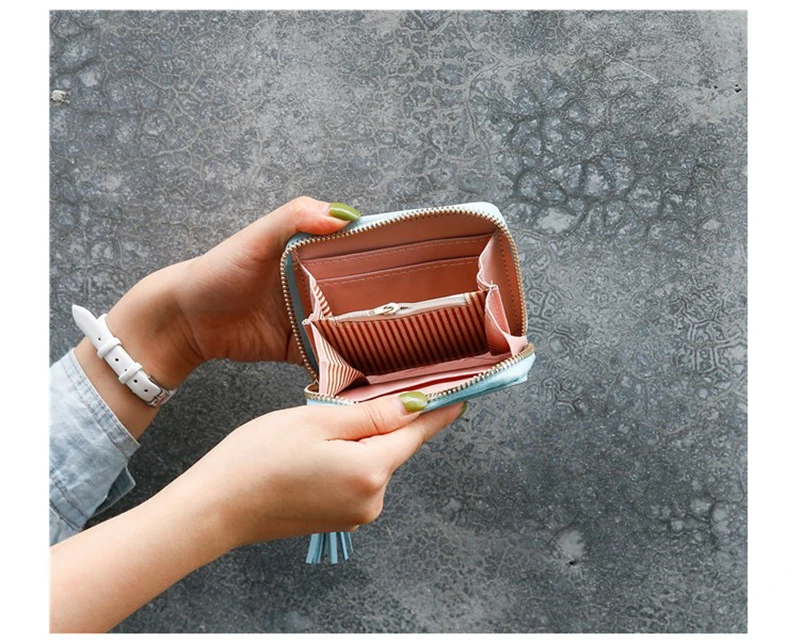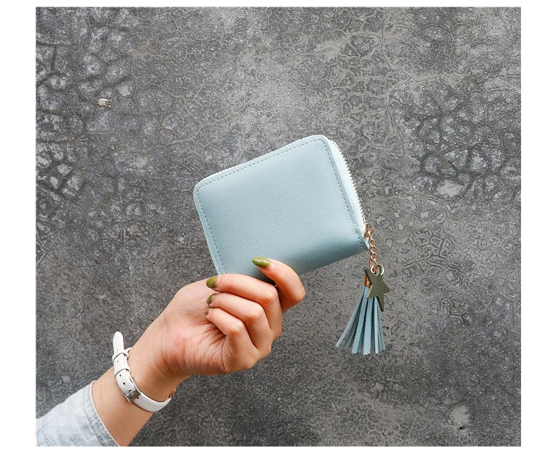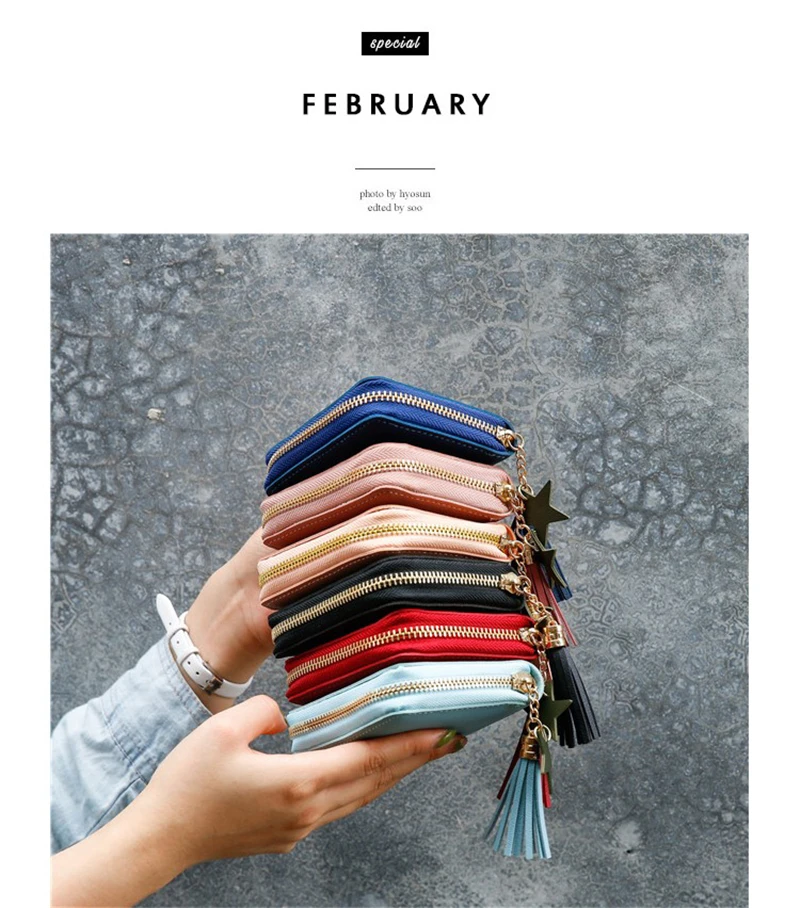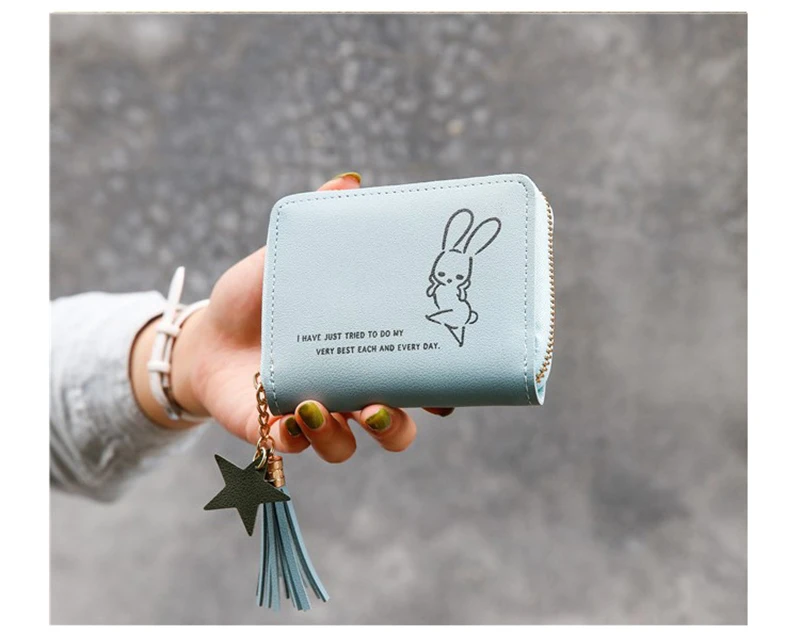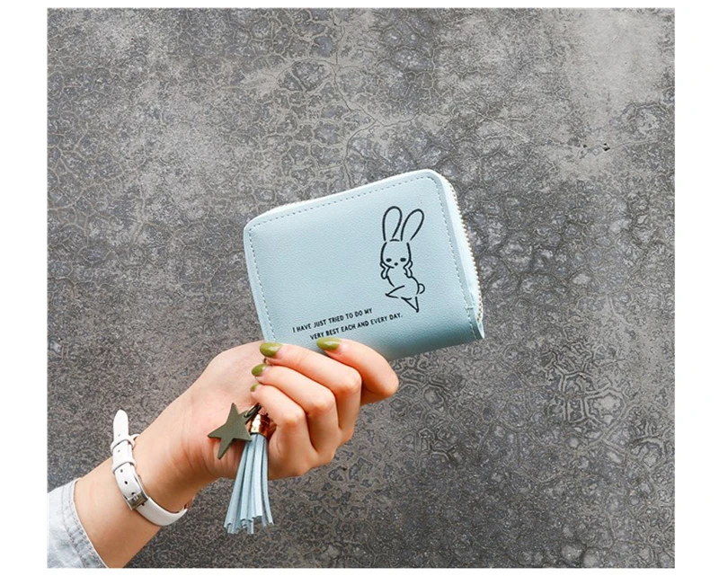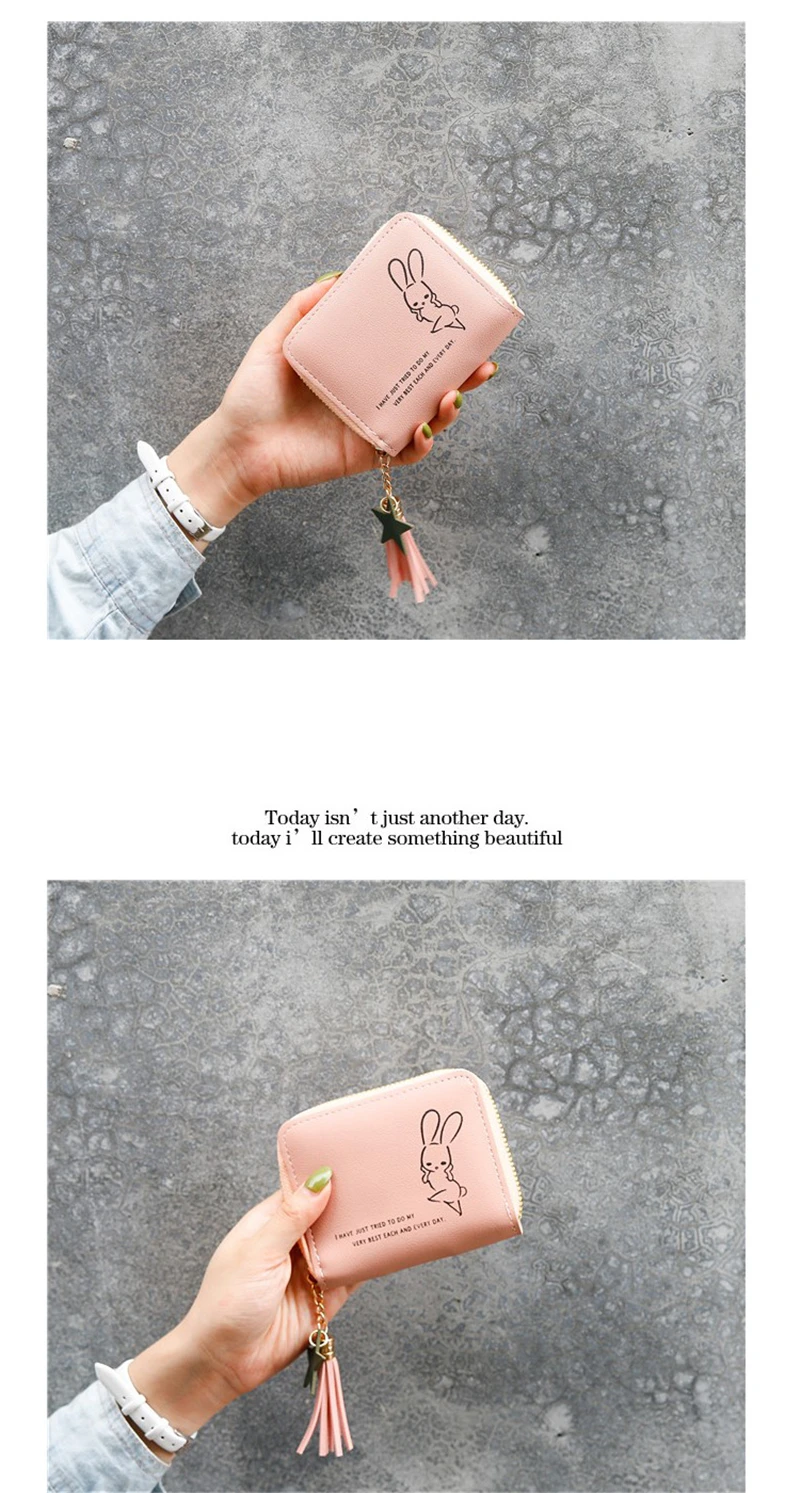 Victoria’s Vogue New Short Paragraph Women’s Zipper Wallet Female Student Cute Cartoon Print Tassels Wild Purse Card Coin Package