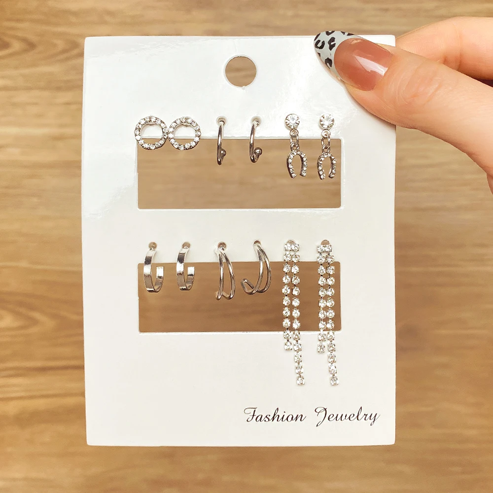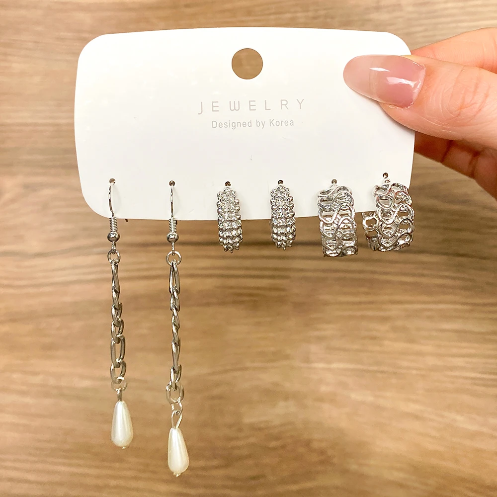 victoria’s vogue New Silver Color Tassel Drop Earring Set For Women Geometric Metal Crystal Earrings 2022 Trend Fashion Jewelry Gift