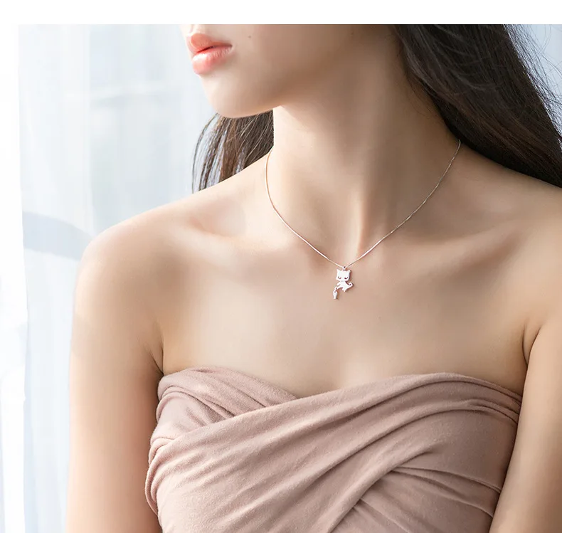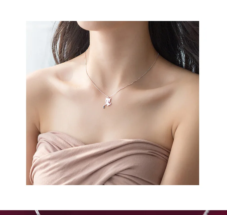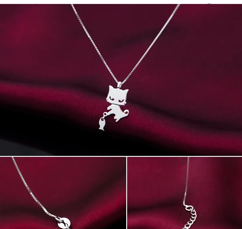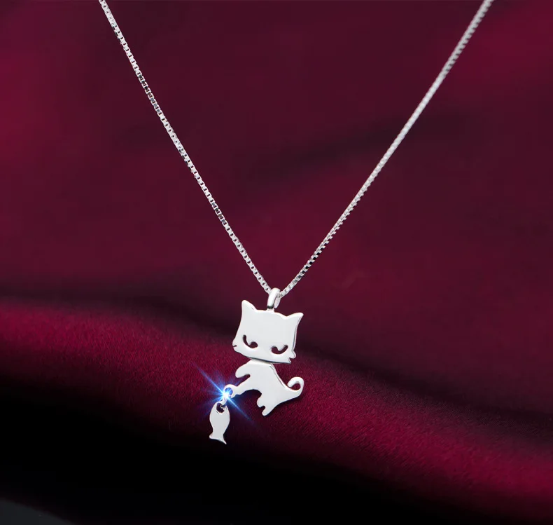 Victoria’s Vogue New Simple Creative Cute Kitten And Fish 925 Sterling Silver Jewelry Fashion Animal Popular Cat Clavicle Chain Necklaces