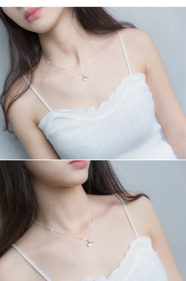 Victoria’s Vogue New Simple Fashion Ginkgo Leaf 925 Sterling Silver Jewelry Women Literary Small Fresh Leaves Temperament Pendant Necklaces