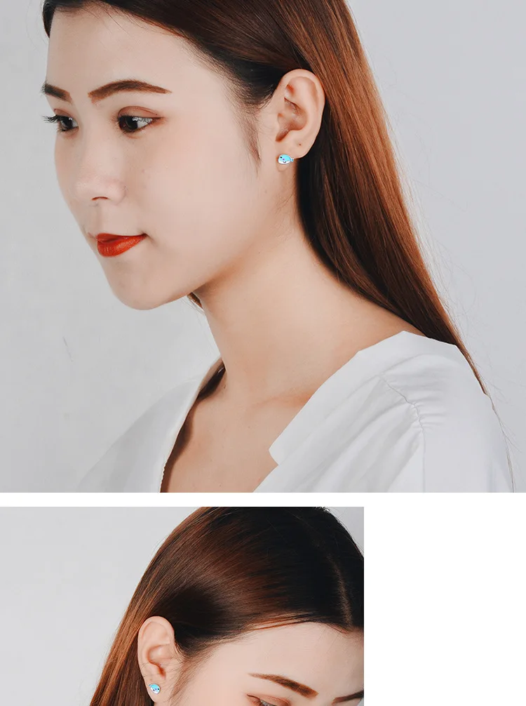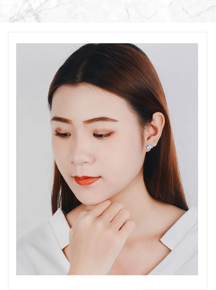 Victoria’s Vogue New Small Fresh Blue Whale Epoxy 925 Sterling Silver Jewelry Personality Fish Beautiful Exquisite Women Stud Earrings