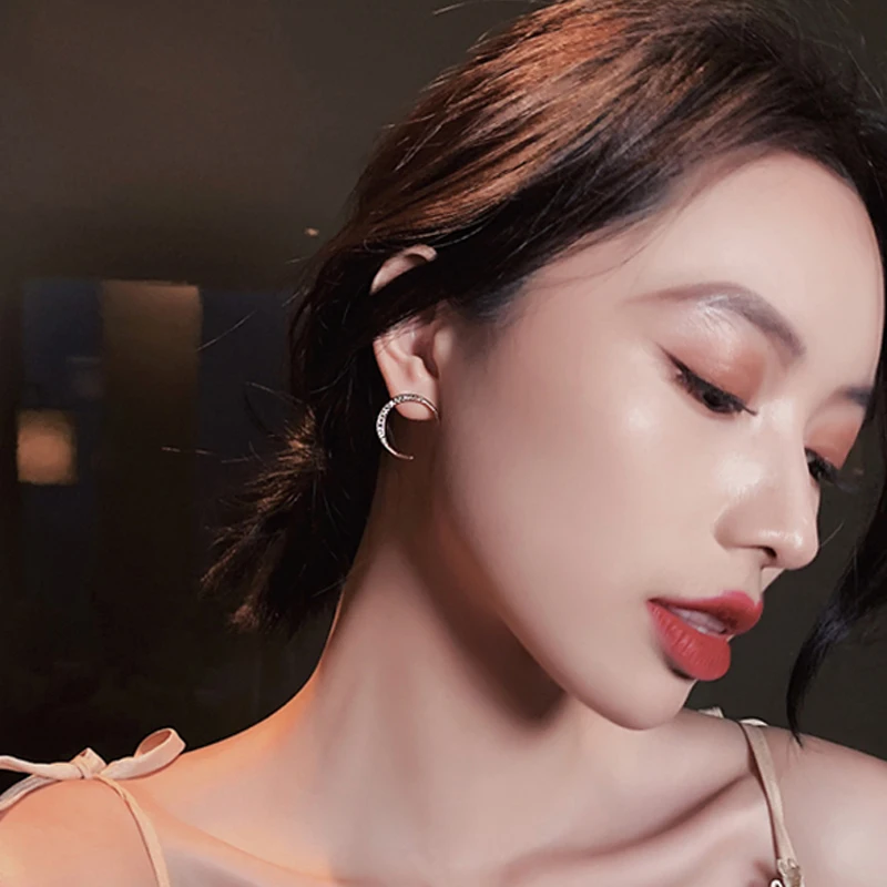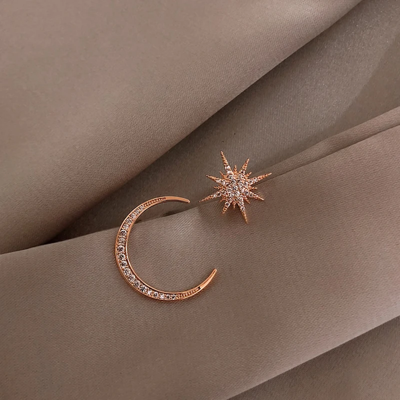 victoria’s vogue New Star Moon Earrings Korean Version Asymmetrical High Sense Earrings Fashion Earrings Exquisite Ear Nail